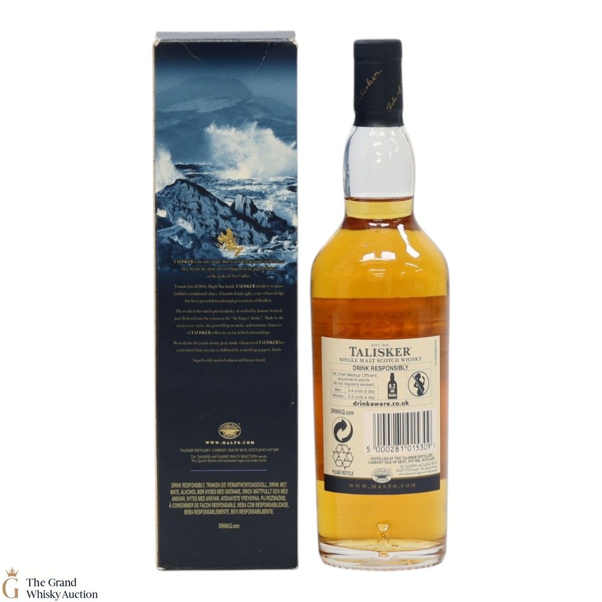 Due to the various ages of bottles and their seals, the condition of liquid is at the buyer's discretion and no claim can be lodged against failure/leakage in transit. Loss and breakage cover is available at 3% of the hammer price as standard. If the lot is not insured, no claim can be lodged against the courier or The Grand Whisky Auction for breakage or loss in transit.