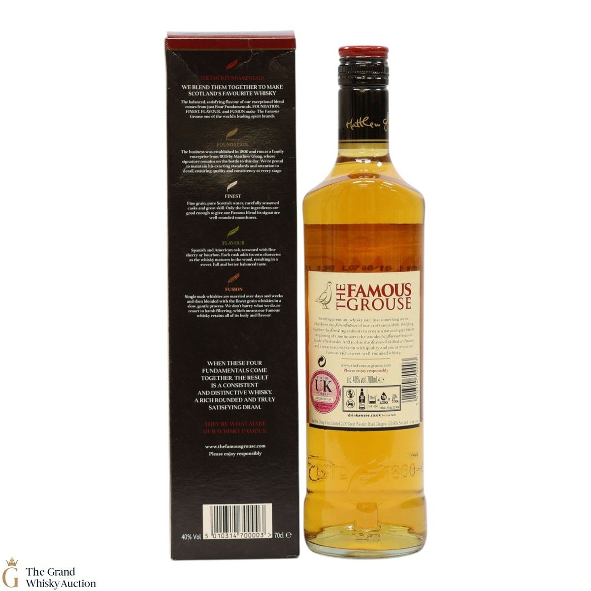 Famous Grouse blended scotch whisky was first produced by Matthew Gloag & Son Ltd in 1896, and is currently produced and owned by The Edrington Group.