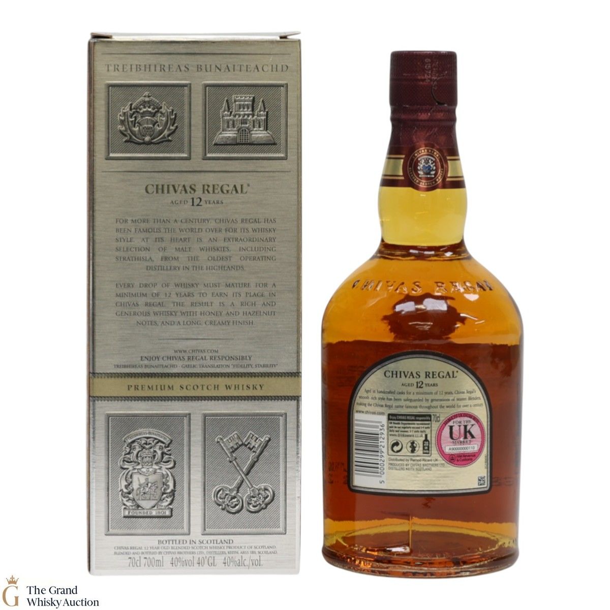 Chivas 12 Year Old is a multi-award-winning premier scotch whisky, an artful blend of many different malt and grain scotch whiskies, matured for at least 12 years.