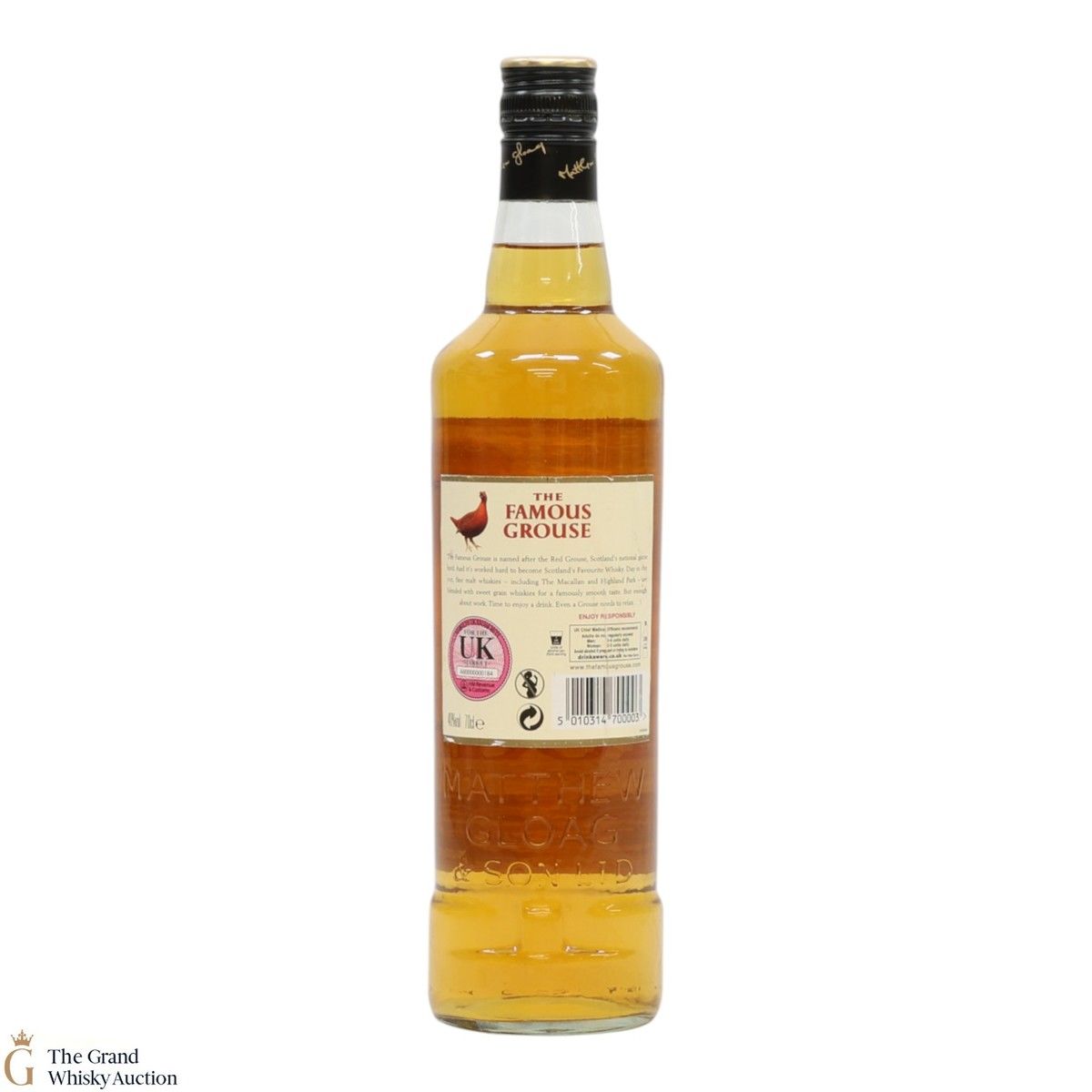 Famous Grouse blended scotch whisky was first produced by Matthew Gloag & Son Ltd in 1896, and is currently produced and owned by The Edrington Group.