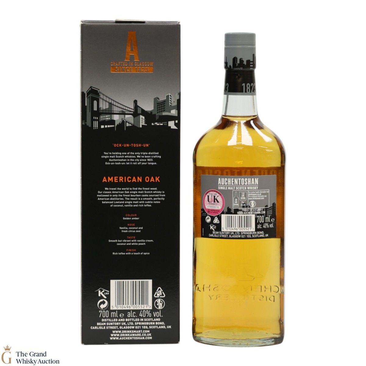 This triple distilled single malt scotch whisky from the Auchentoshan Distillery comes from a first fill North American oak casks. This bottling has a vanilla and coconut sweetness from a first fill bourbon casks.