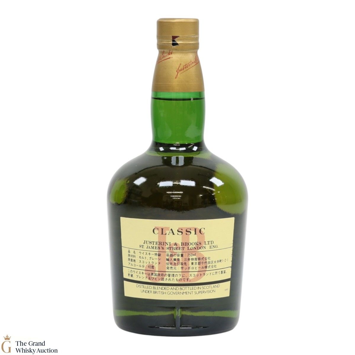 This bottle of Justerini and Brooks blended whisky. J&B Rare is so recognisable as they haven't changed the iconic bottle or label design much for decades!