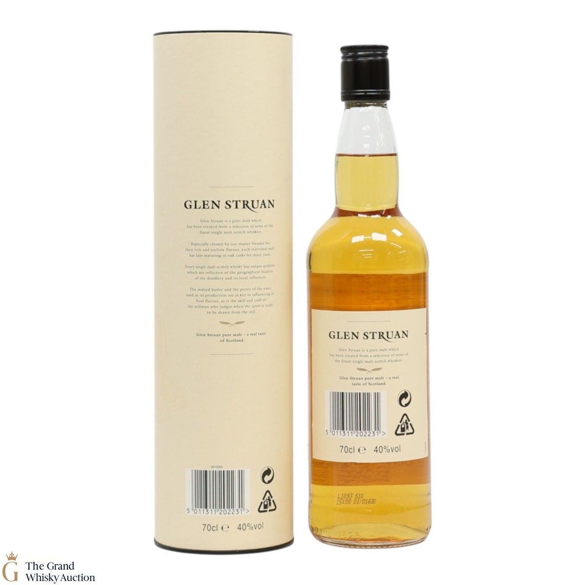 Glen Struan is a Pure Malt which has been created with some of the finest single malt scotch whiskies, aged in oak casks.