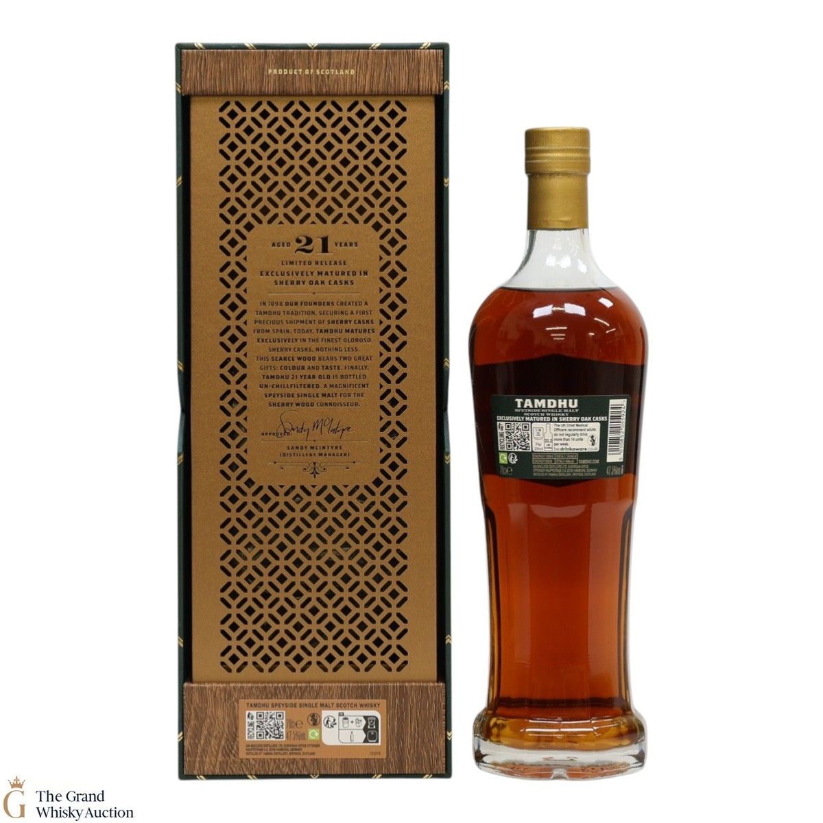 Tamdhu 21 Year Old is the most mature expression in the distillery’s core range, showcasing the brand’s dedication to sherry oak maturation. Each drop is exclusively aged in the finest Oloroso sherry casks, with a skilful balance of American and European oak delivering layered complexity. First fill and refill casks are used to create a rich and poised flavour profile, offering a refined sweetness followed by a lingering dryness. Bottled at 47.5% ABV.