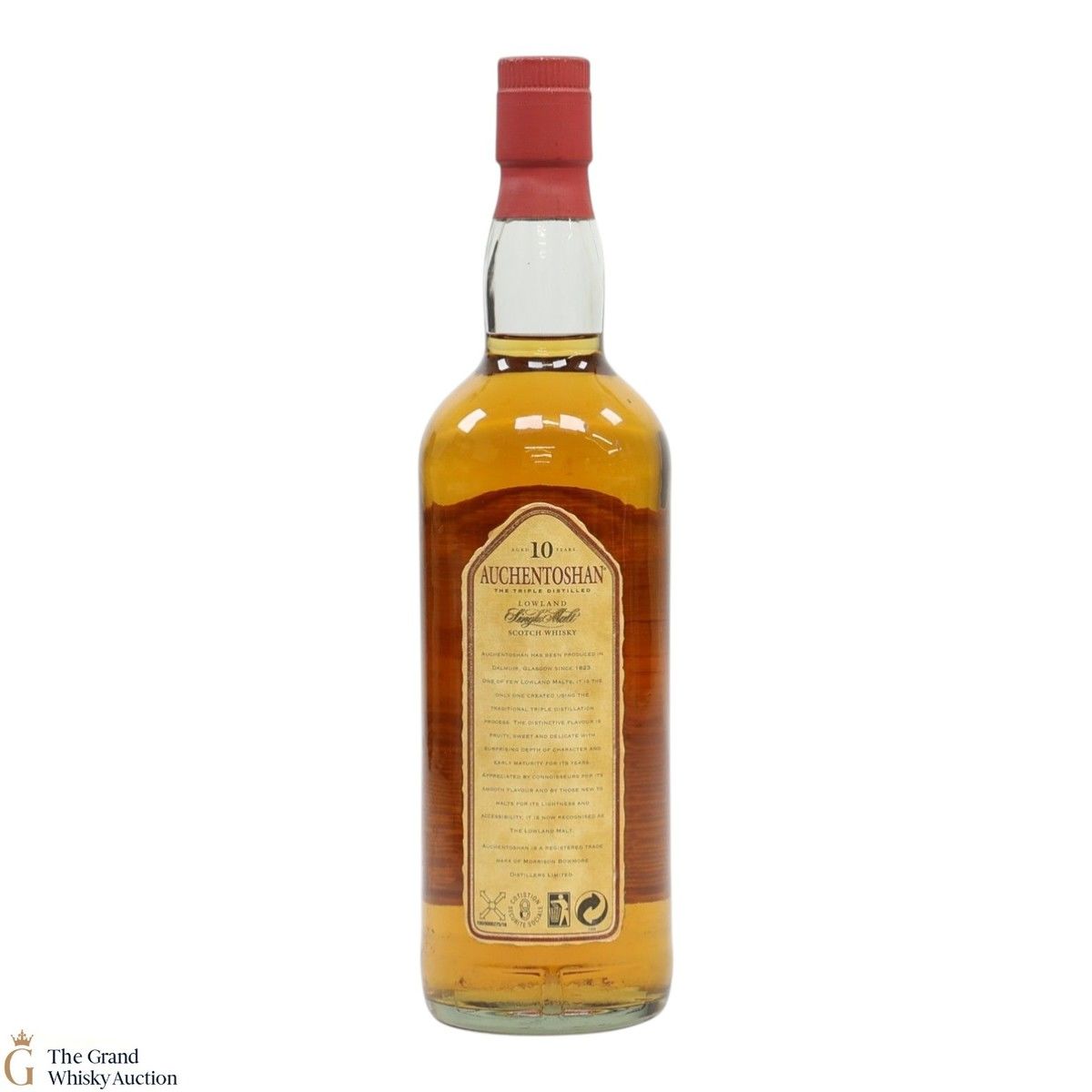 This is an older style of 10 year old Lowland single malt distilled at Auchentoshan was bottled in the 1980s. It was triple-distilled and aged in oak casks. This is a 70cl bottling.