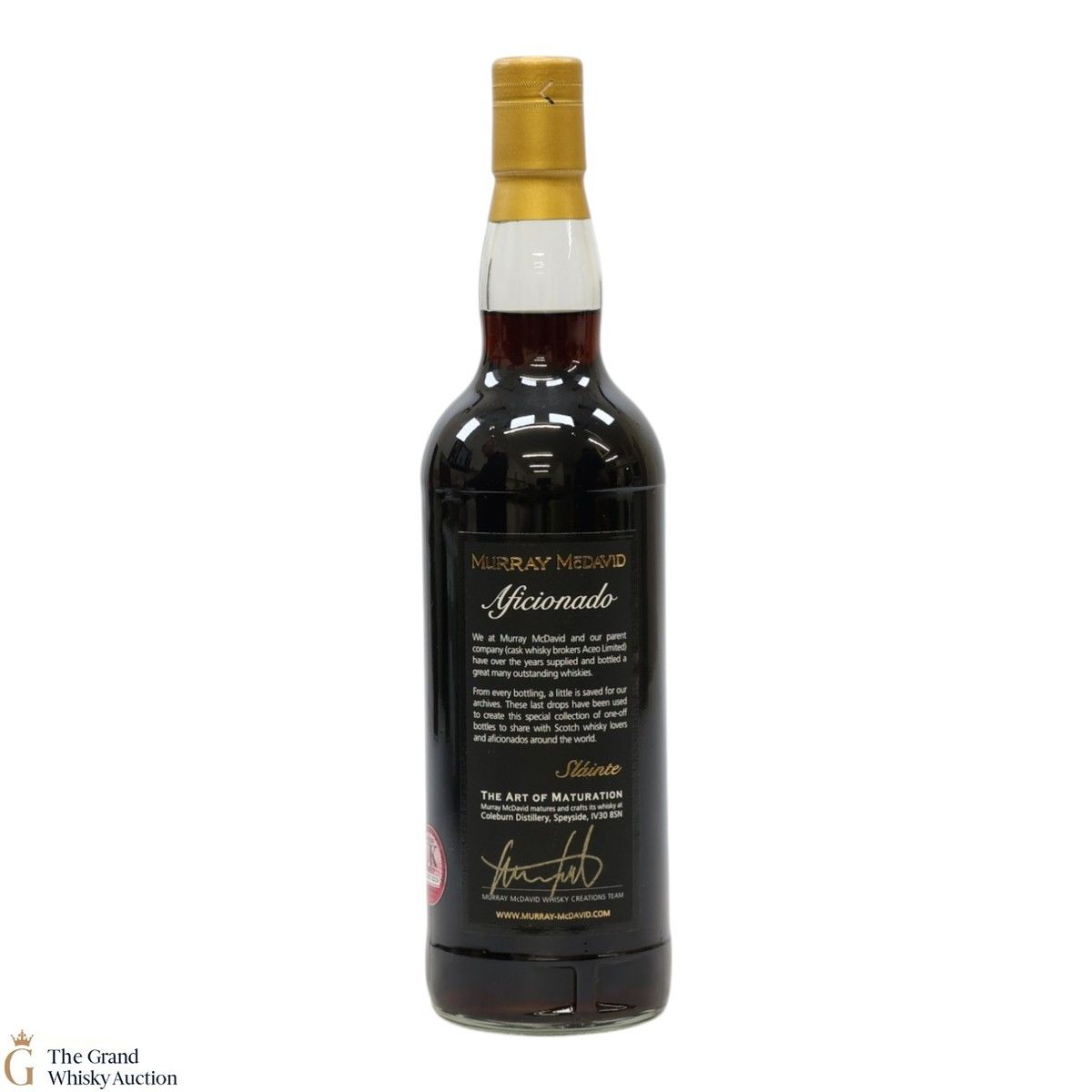 Due to the various ages of bottles and their seals, the condition of liquid is at the buyer's discretion and no claim can be lodged against failure/leakage in transit. Loss and breakage cover is available at 3% of the hammer price as standard. If the lot is not insured, no claim can be lodged against the courier or The Grand Whisky Auction for breakage or loss in transit.