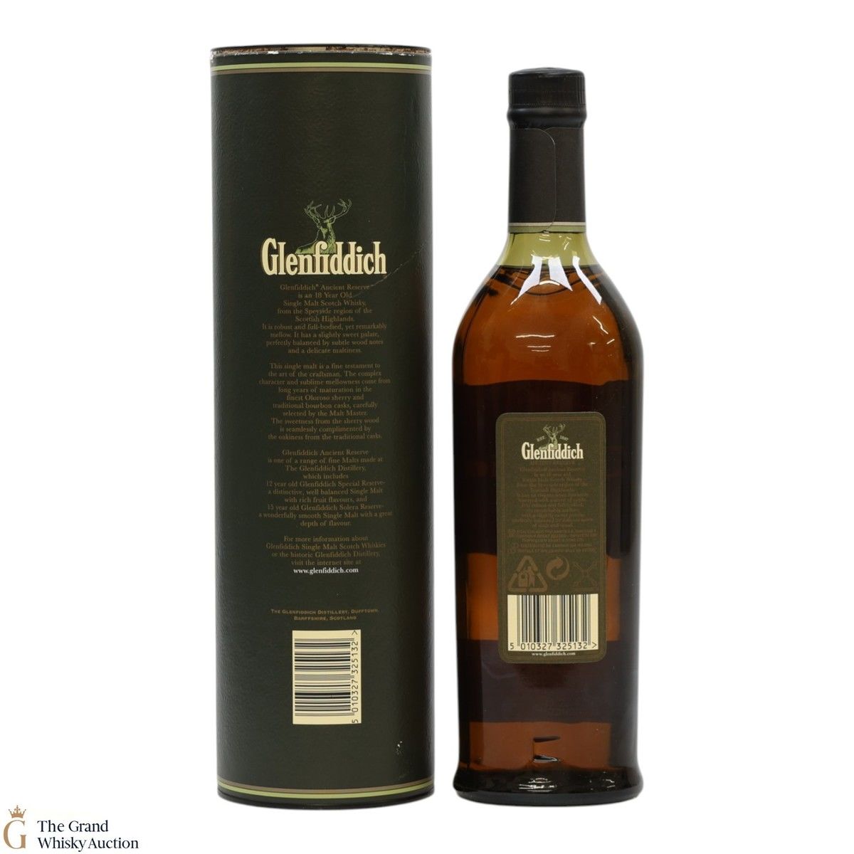 Glenfiddich's 18-year-old Ancient Reserve single malt whisky. This edition comes in the Glenfiddich livery rather than the decanters used in the early 1990s.
