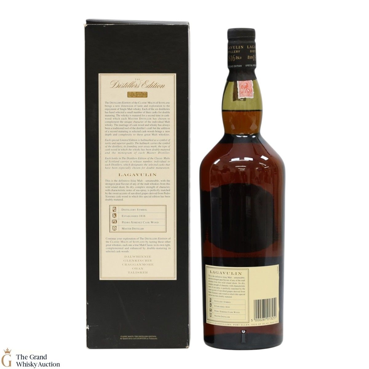 Lagavulin 1986 Distillers Edition was double-matured and was bottled in 2002 at 43% ABV. Lagavulin is the most sought-after bottling of the Distiller’s Edition range.