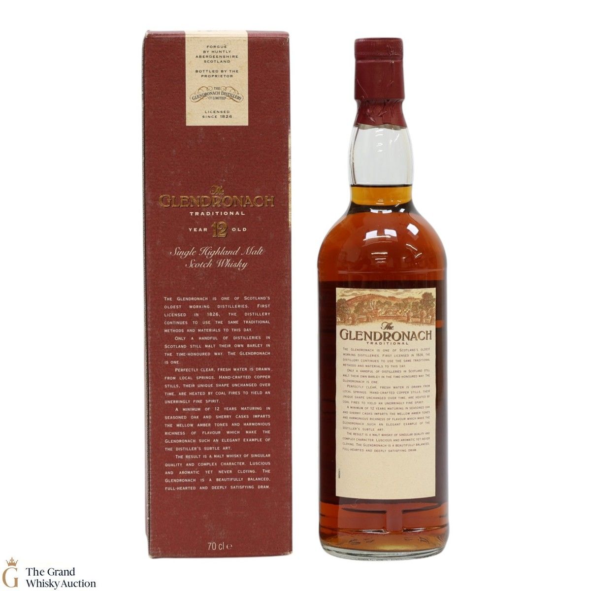 This is an old bottling of GlenDronach 12 Year Old Traditional single malt. It was matured in seasoned oak and Sherry casks. This is a bottle from the 1990s.