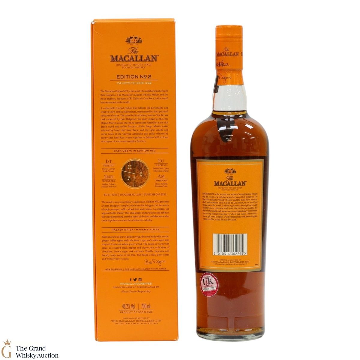 This is the second release from the Macallan Edition series. Edition No.2 is a collaboration between Macallan's master blender Bob Delgarno and legendary Spanish chefs Joan, Josep and Jordi Roca. The Rocas are the three brothers behind El Celler de Can Roca (named Best Restaurant in the World twice by Restaurant magazine). This single malt was drawn from a combination of sherry puncheons, butts and refill hogsheads.