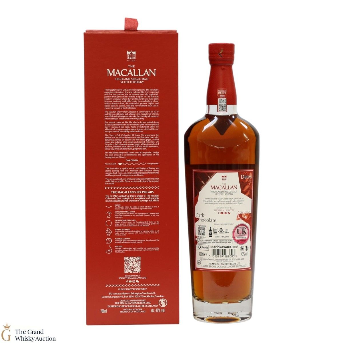 This annual release of The Macallan's popular 18-year-old Sherry Oak is matured predominantly sherry seasoned European oak casks from Jerez, Spain. There will be a small amount of American Oak Casks in this release also.
