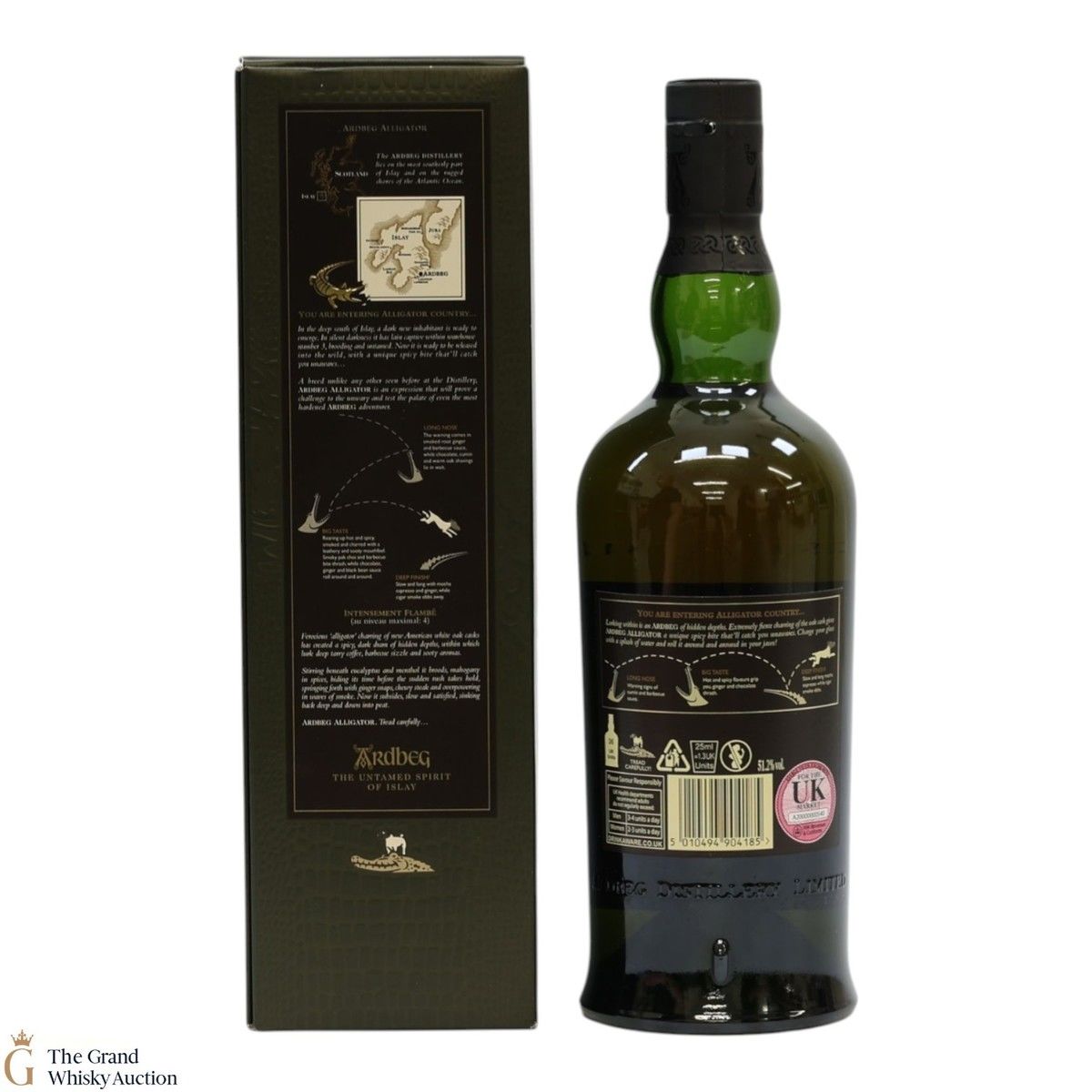 Aged in a similar style to the Ardbeg 10-year-old, apart from the fact that a portion of the whisky was aged in heavily charred barrels. The new American White Oak barrels are charred to such an extent that they start to crack a little on the inside, and this resembles alligator skin, thus the name.