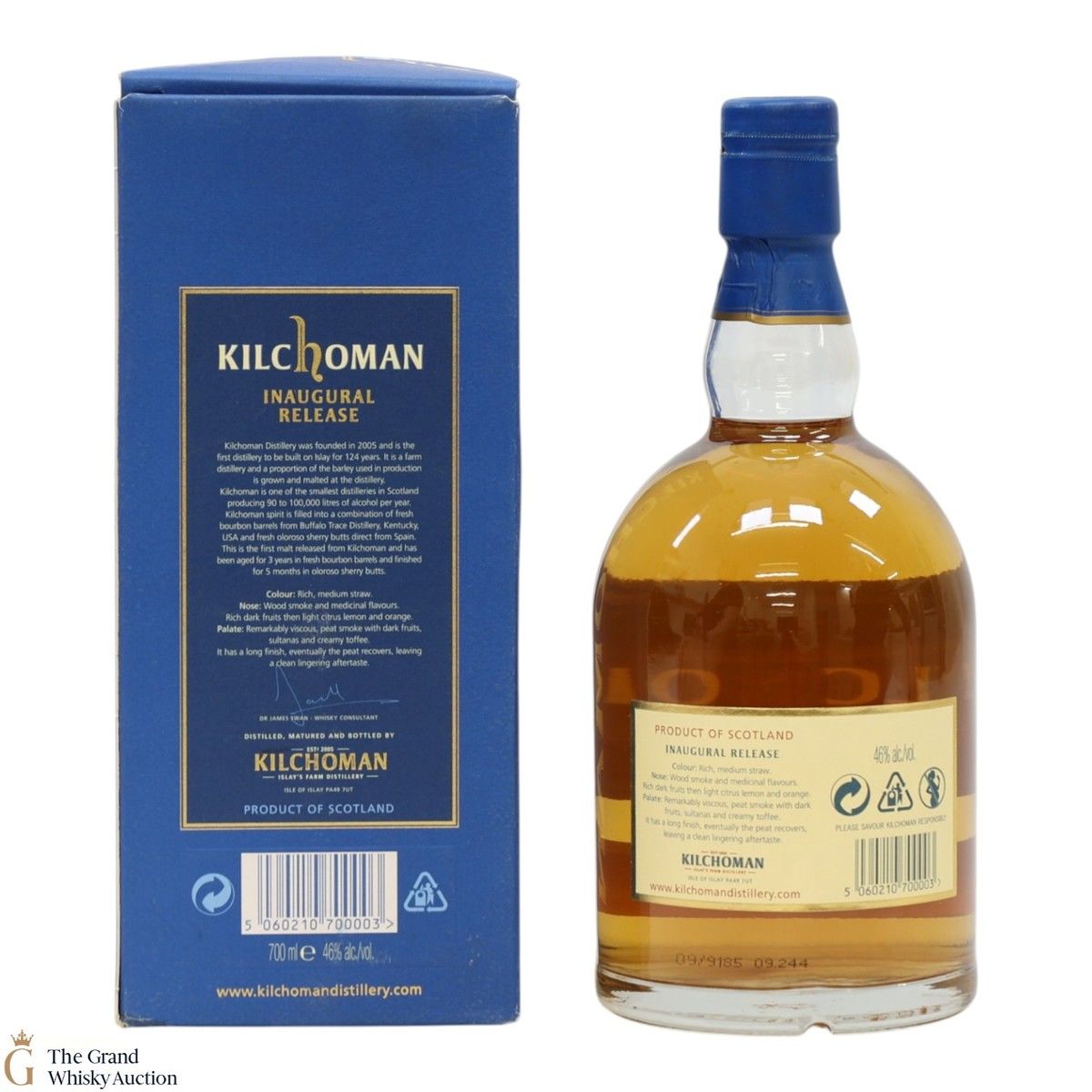 This is the first-ever release of single malt whisky from the Kilchoman Distillery. This Inaugural Release was aged for between 2.5 and 3 years in bourbon casks, before being finished for 6 months in sherry casks. Very good indeed. Malt Advocate rated it with 92 points.
