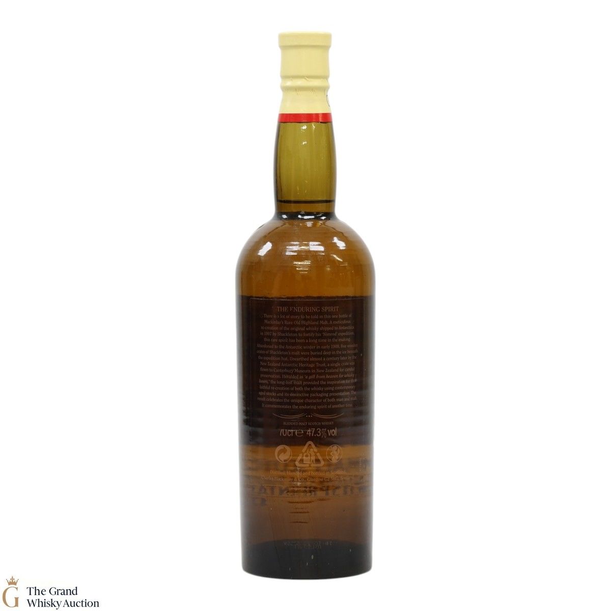 When Sir Ernest Shackleton commenced his famous expedition in 1907, he ordered 25 cases of Mackinlay's Rare Old Highland Malt Whisky to take with him. One hundred years later, eleven intact bottles containing the perfectly preserved whisky were discovered under the ice.