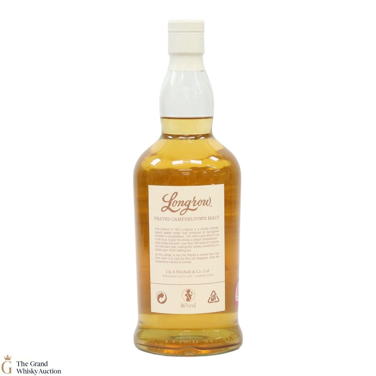 A bottle of Longrow Peated - This is essentially the awesome Longrow C.V. bottling in new packaging, which used to be Longrow's entry-level whisky. Longrow is Springbank's heavily peated whisky - this is a no-age statement expression.