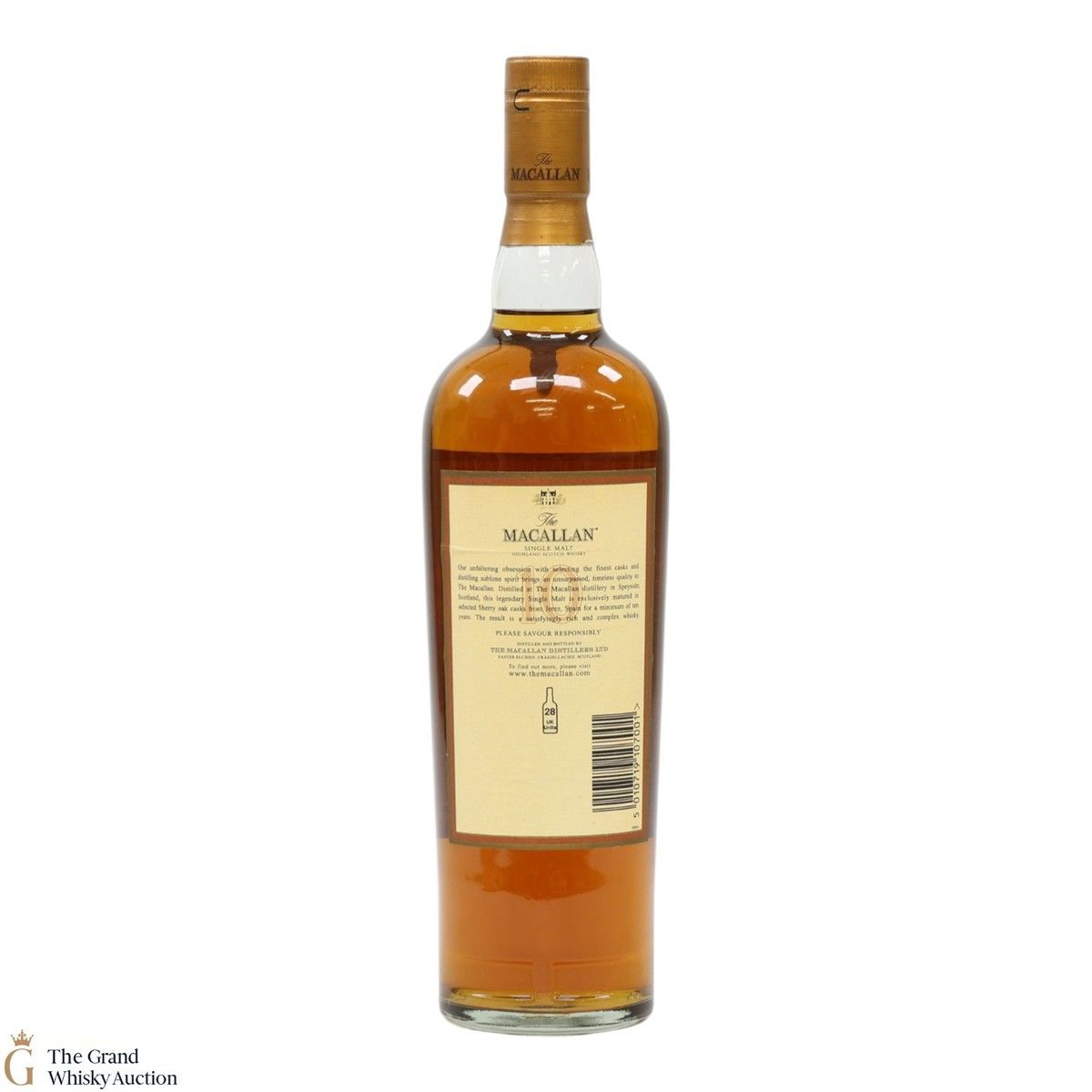 Distilled at the world-renowned Macallan Distillery in Speyside, this single malt was matured exclusively in sherry oak casks from Jerez, Spain. It was aged for a total of 10 years prior to bottling at a strength of 40% ABV.