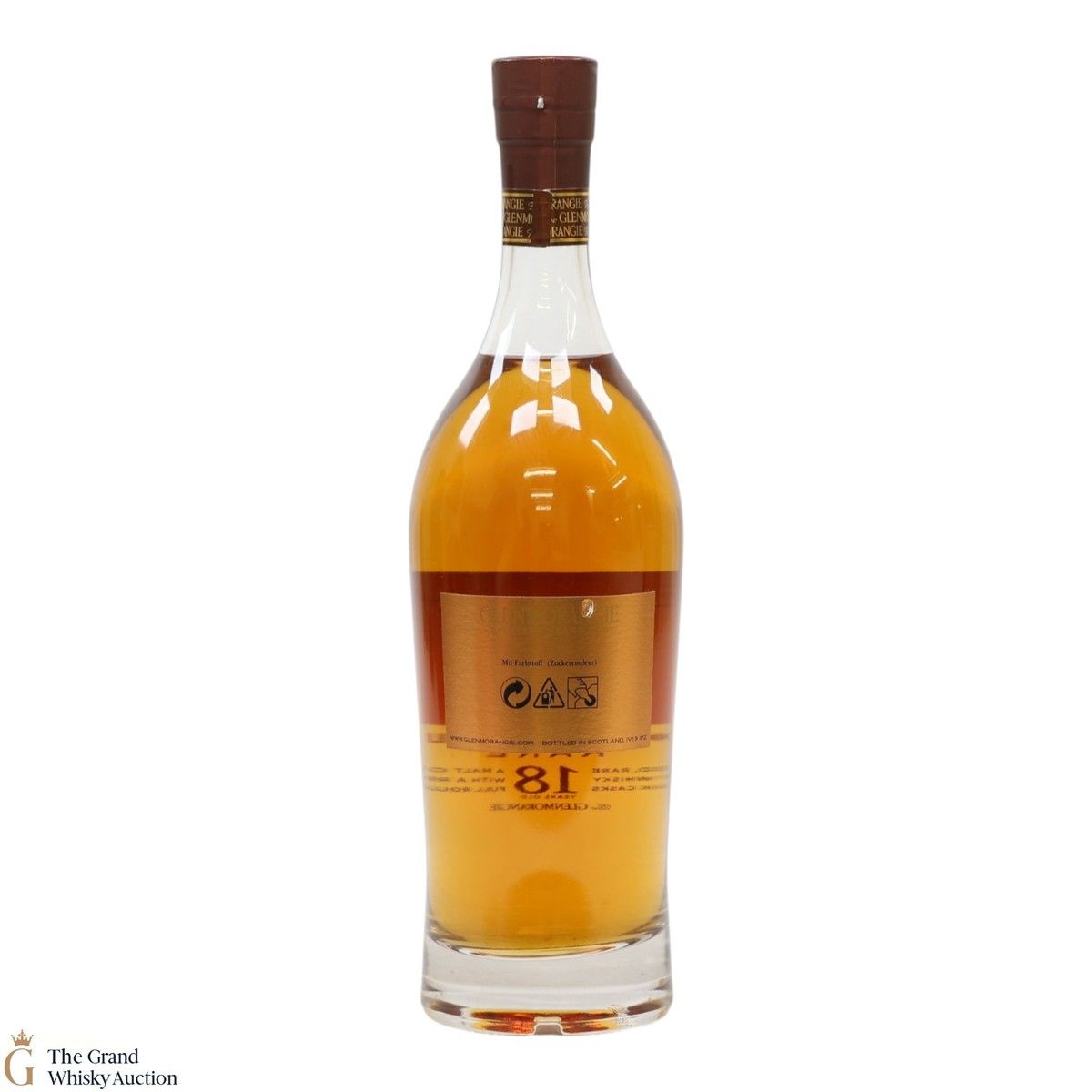 This bottle is an 18-year-old Extremely Rare, Highland single malt produced by Glenmorangie. It has been perfected by the sixteen men of Tain who have specially aged this bottle for 18 years in superior oak casks.