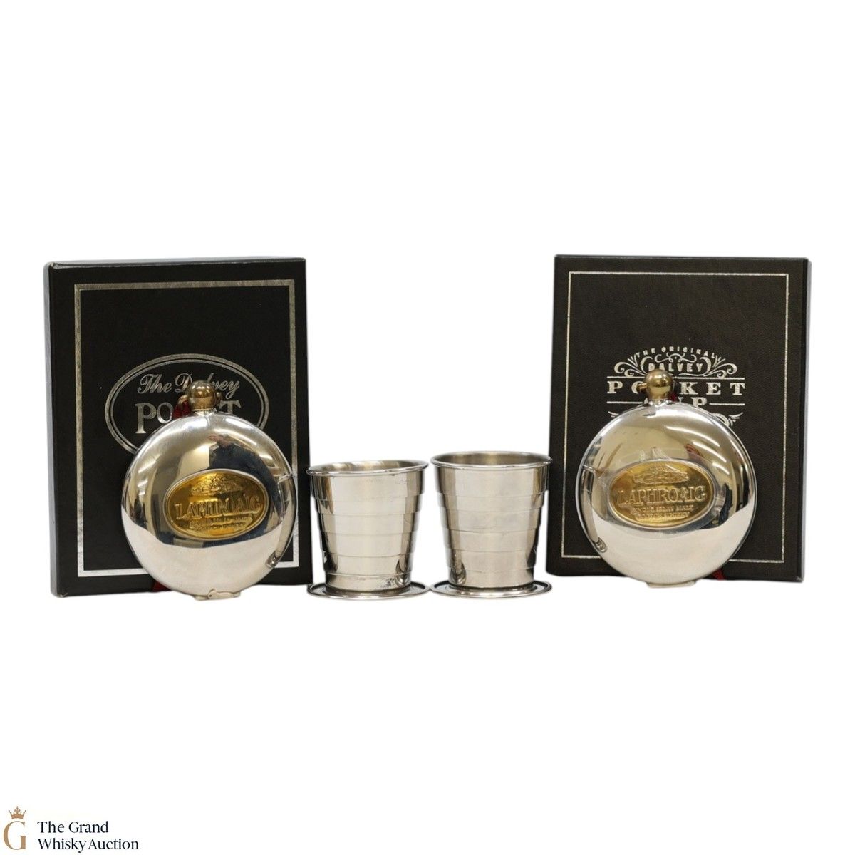 A smart little pocket cup advertising Laphroaig produced by Grant's of Dalvet.