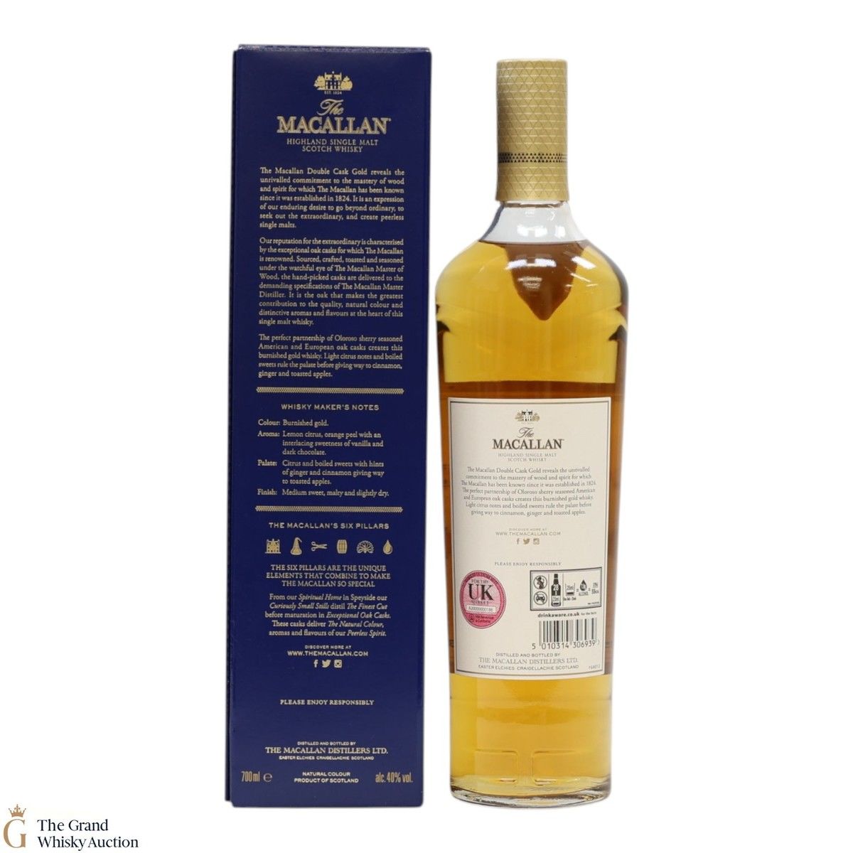 Macallan Gold was first introduced in 2012 as part of the distillery's 1824 range of non-age statement expressions, before being renamed Macallan Gold Double Cask in 2018 as part of the new core range. Matured in a combination of first fill and refill American oak and European oak sherry casks to create an incredibly smooth and rich single malt. Soft gold in colour, this is the lightest expression of the Macallan range, but still packed with typical Speyside Macallan flavours.