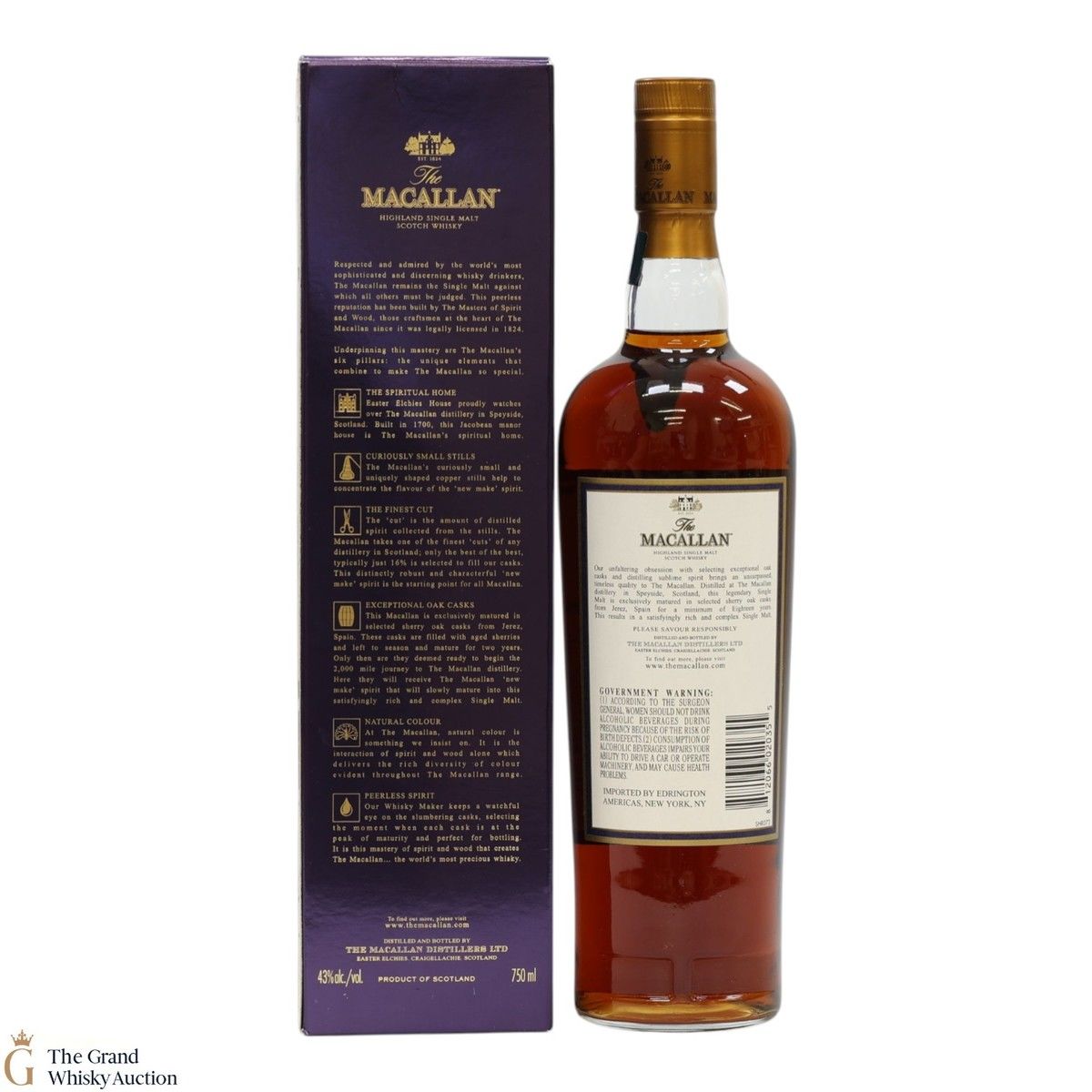 This annual release of The Macallan's popular 18 Year Old Sherry Oak is matured exclusively in sherry seasoned casks, built from both Spanish and American oak, providing a beautifully dark flavour with rich aromas.