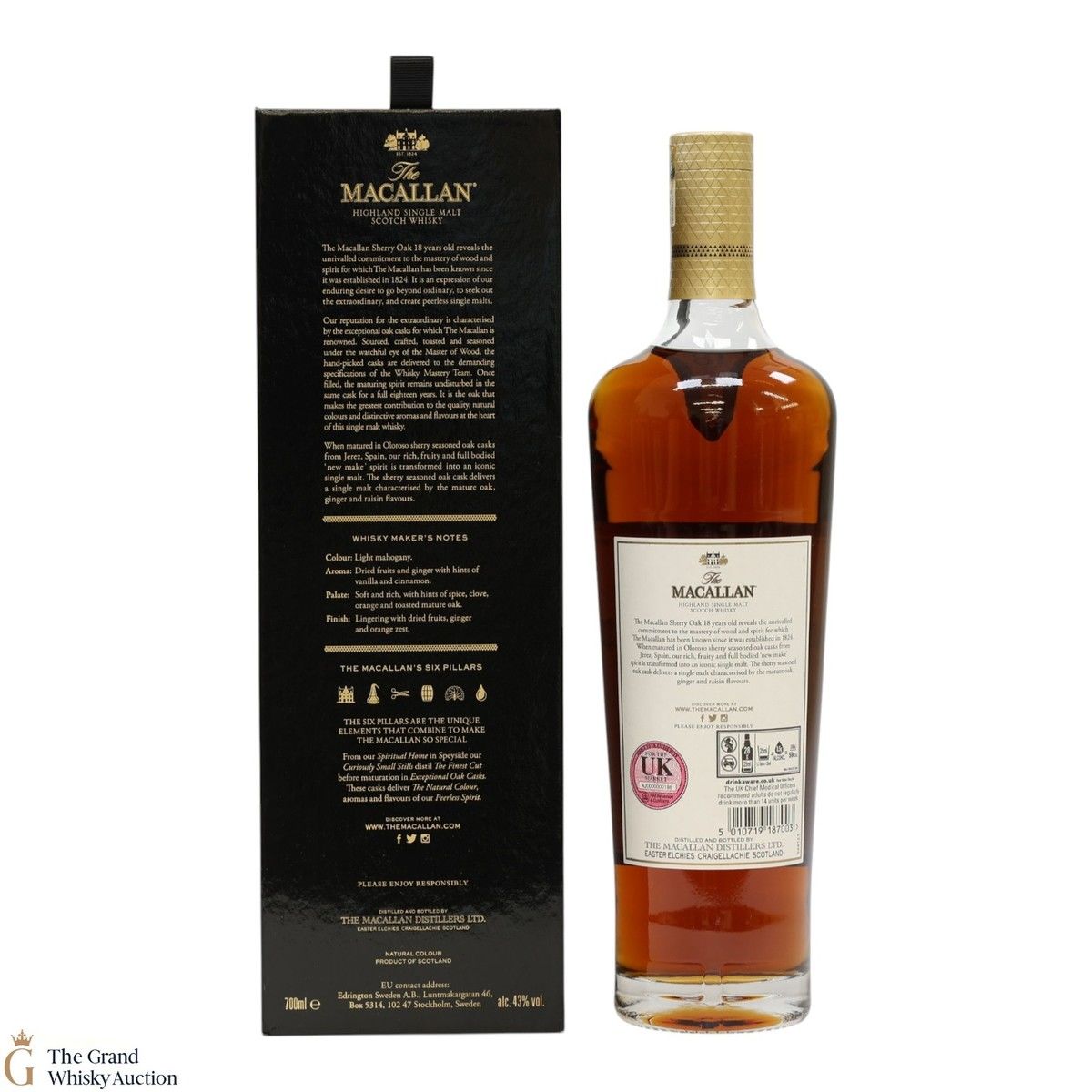 This annual release of The Macallan's popular 18 Year Old Sherry Oak is matured exclusively in sherry-seasoned casks, built from both Spanish and American oak, providing a beautifully dark flavour with rich aromas.
