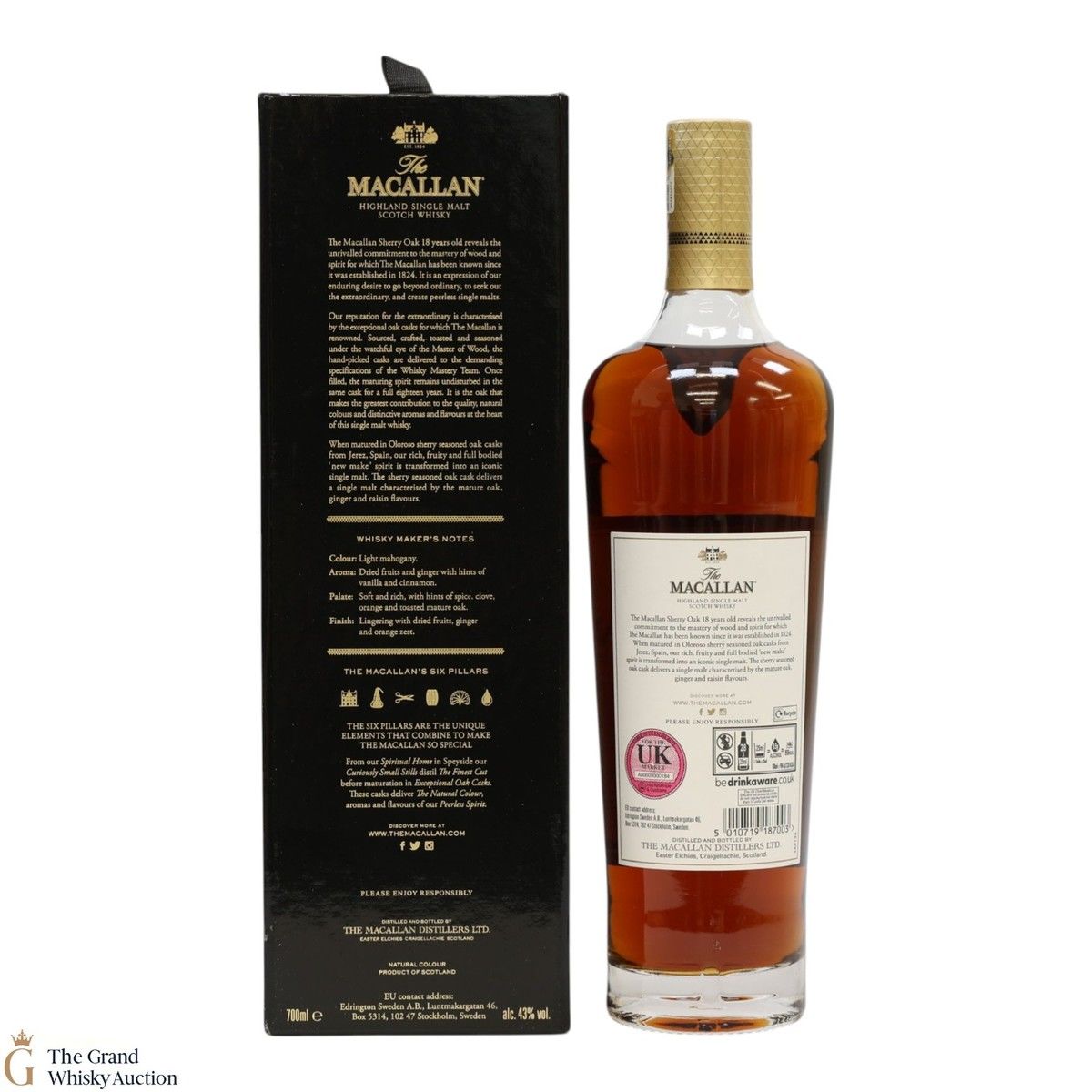 This annual release of The Macallan's popular 18 Year Old Sherry Oak is matured exclusively in sherry seasoned casks, built from both Spanish and American oak, providing a beautifully dark flavour with rich aromas.