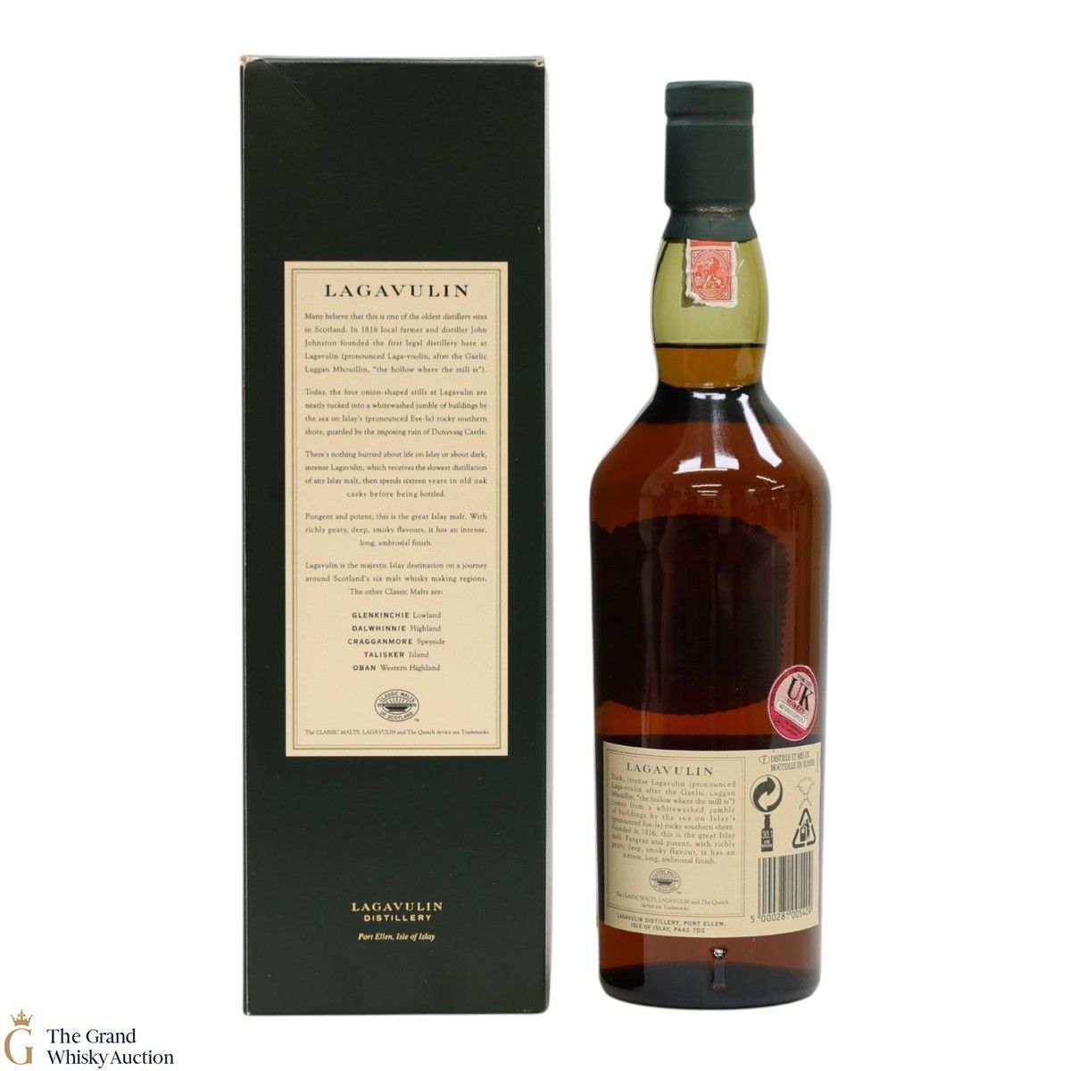 Lagavulin is said to be one of the oldest distilleries on Islay and is world-renowned for its smoky, peaty whiskies. It is situated on Islay's south coast where legal distilling started in 1816 by John Johnson. The distillery was then moved into the hands of the Mackie's who launched White Horse into export markets. White Horse Distillers became part of DCL in 1927 just shortly before the Distillery was closed in 1942 for the remainder of WWII. Later, Lagavulin 16 joined the Classic Malts portfolio in 1989 and ever since has been a great success.