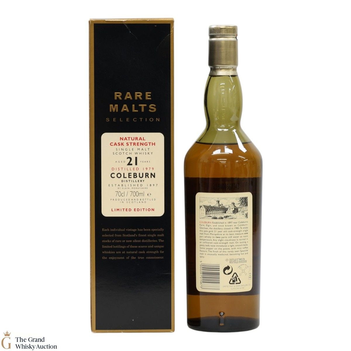 This Coleburn 21-year-old limited edition was bottled for the Rare Malts series. Distilled in 1979 this Speyside single malt was bottled at the natural cask strength of 59.4% in October 2000.