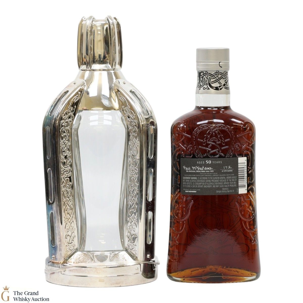This Highland Park 50 Year Old single malt was distilled in 1964 and matured in two sherry seasoned hogsheads until January 2010, when they were married together and vatted with some 1960 whisky before being returned to their hogsheads and left for eight more years. There were only 274 bottles produced, and each bottle is presented in a handcrafted oak box along with a silver-plated crystal decanter.