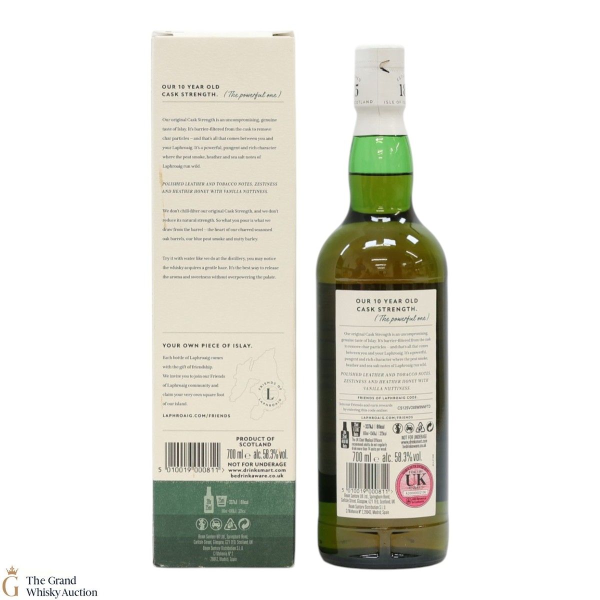 This original cask strength bottling of the medicinal 10-year-old from Islay's bestselling distillery, Laphroaig. In making Laphroaig, malted barley is dried over a peat fire. The smoke from this peat, found only on Islay, gives Laphroaig its particularly rich flavour.