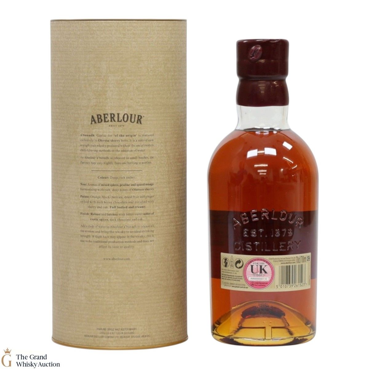 Meaning 'of the origin' in Gaelic, A'bunadh is made in homage to Aberlour's founder, James Fleming. This is batch No. 61 of the popular A'Bunadh single malt. It has been matured in Spanish Oloroso sherry butts and bottled at cask strength at 60.8% creating a dark luxurious whisky.