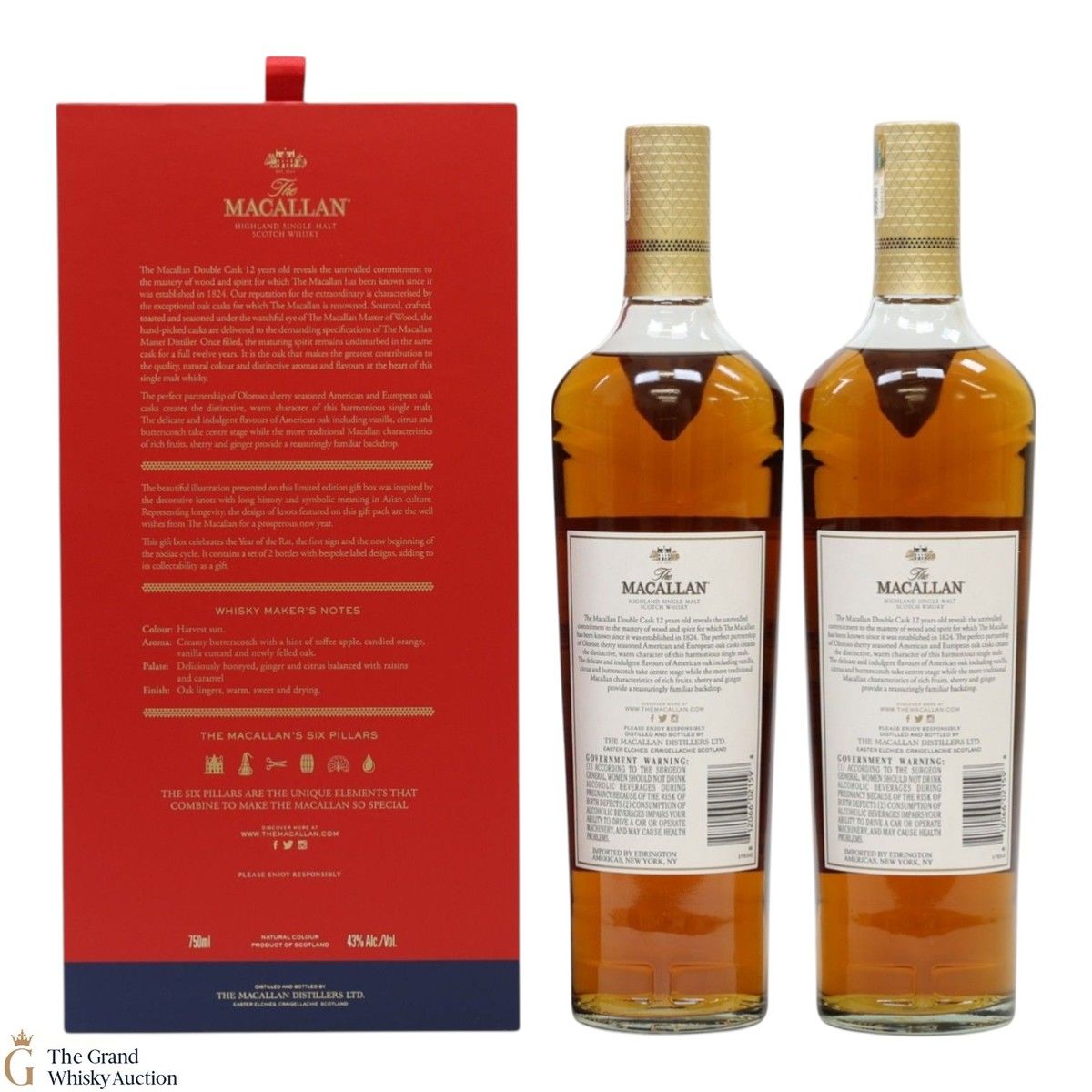 With bespoke label designs, this is an eye-catching limited-edition release twin pack containing 2 x 75cl bottles of The Macallan 12-year-old Double Cask single malt whisky.