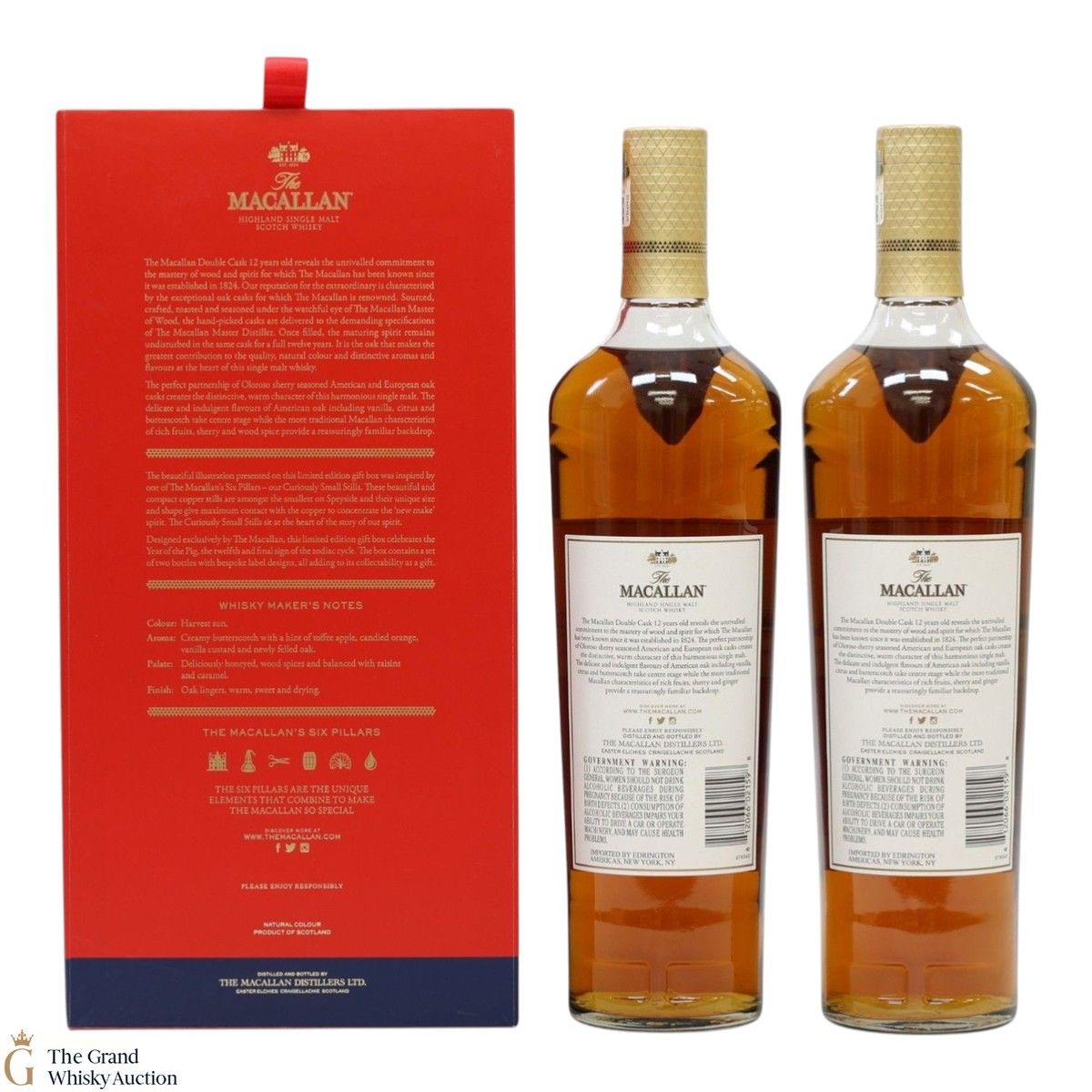 With bespoke label designs, this is an eye-catching limited-edition release twin pack containing 2 x 75cl bottles of The Macallan 12-year-old Double Cask single malt whisky.
