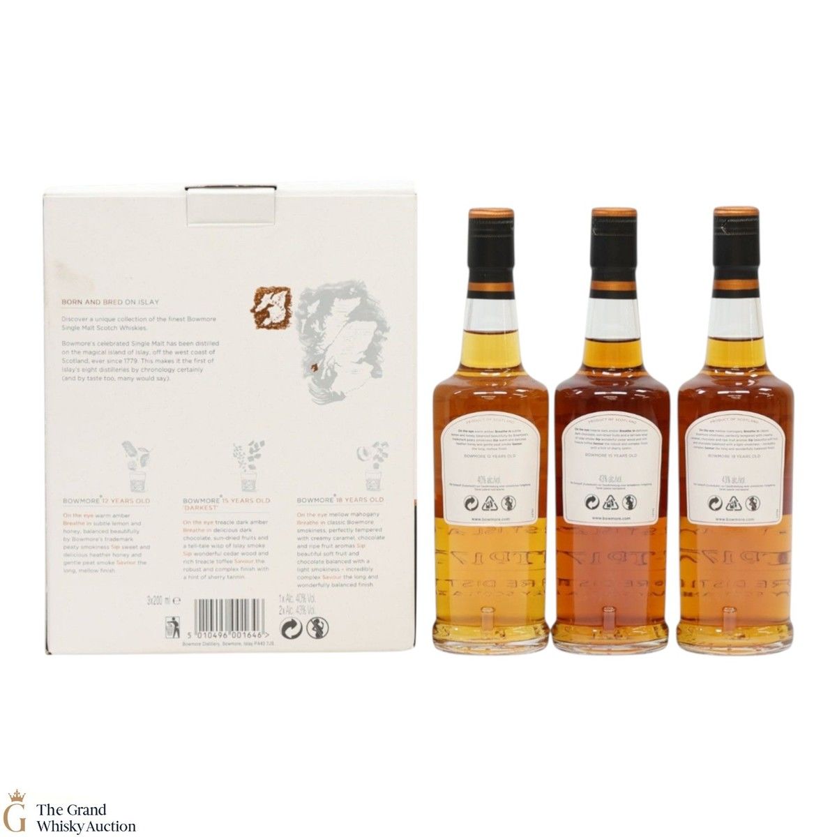 A chance to sample three of the wonders Bowmore offer. This Bowmore gift pack contains miniature bottles of the 12-year-old, 15-year-old (Darkest) and 18-year-old expressions.