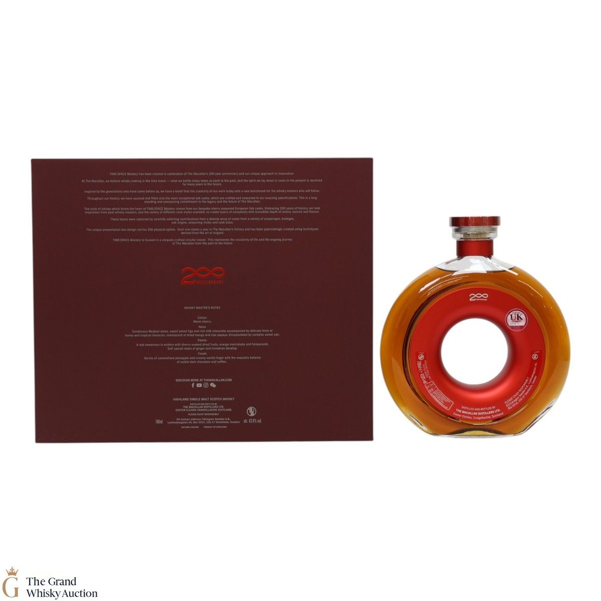 This whisky is contained in a unique circular vessel symbolising the circle of life and the ongoing journey from the past to the future. It was matured in one of Macallan's bespoke sherry-seasoned European oak casks until bottled at a strength of 43.6% ABV.