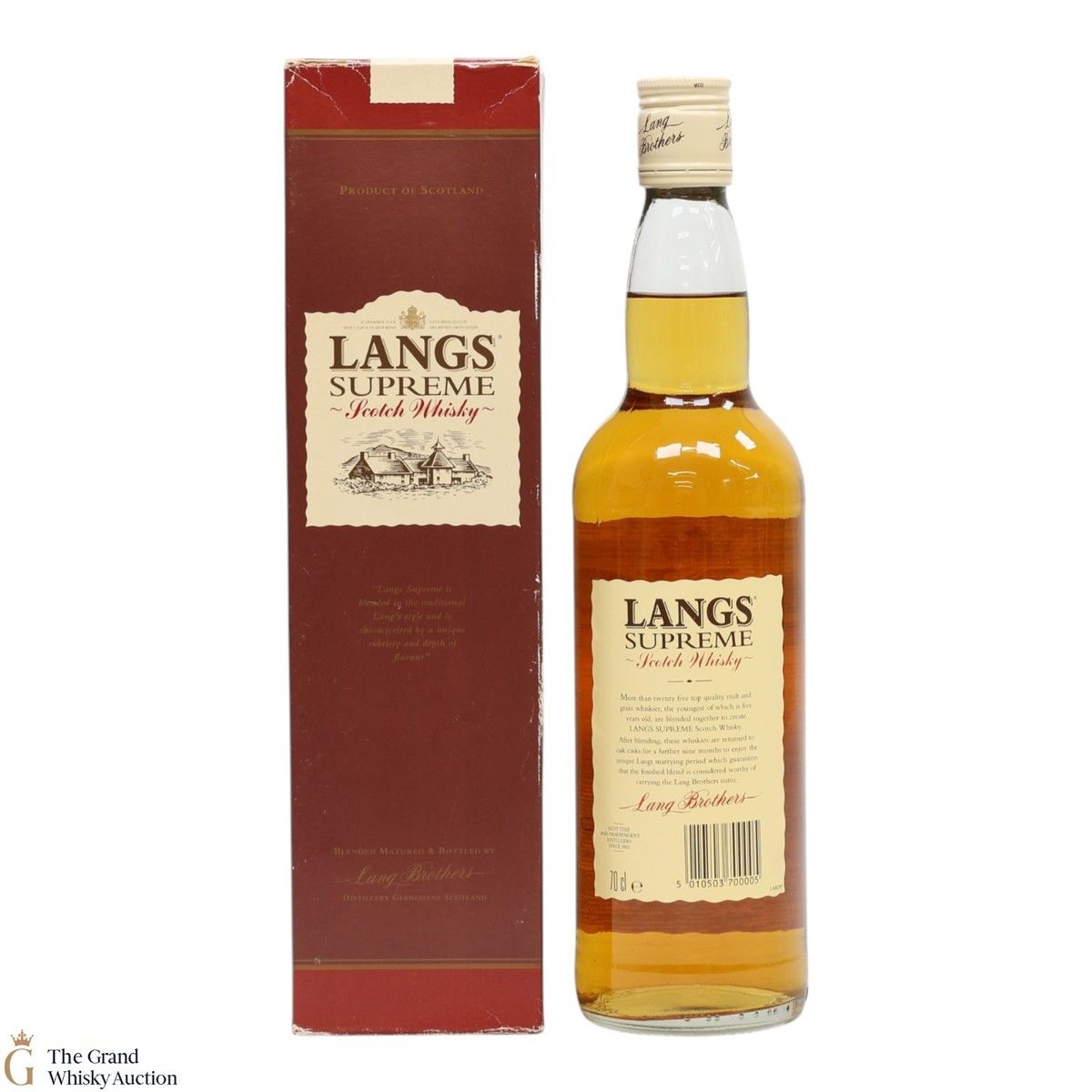 Langs Supreme, a blended whisky matured and bottled by the Lang Brothers.