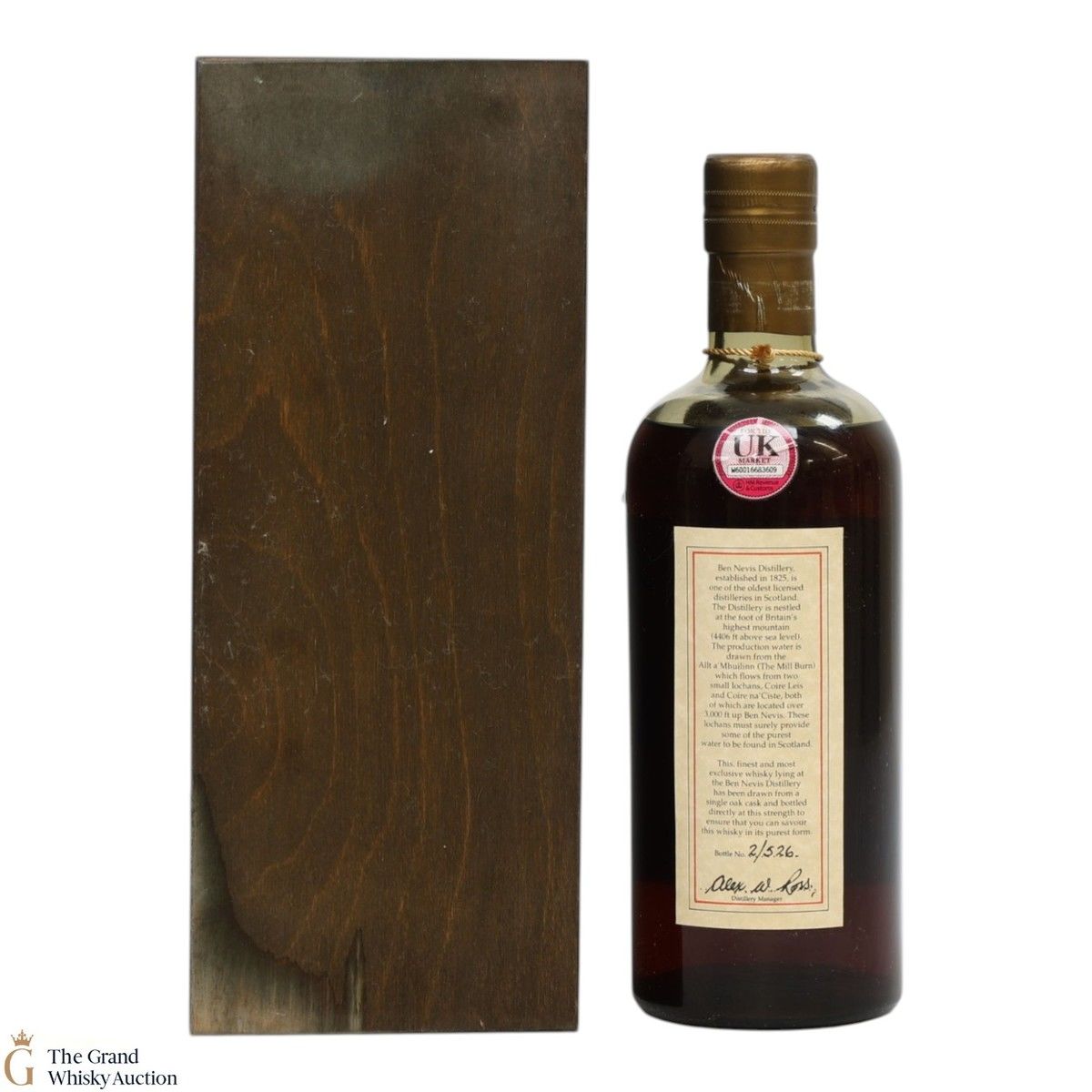 Due to the various ages of bottles and their seals, the condition of liquid is at the buyer's discretion and no claim can be lodged against failure/leakage in transit. Loss and breakage cover is available at 3% of the hammer price as standard. If the lot is not insured, no claim can be lodged against the courier or The Grand Whisky Auction for breakage or loss in transit.