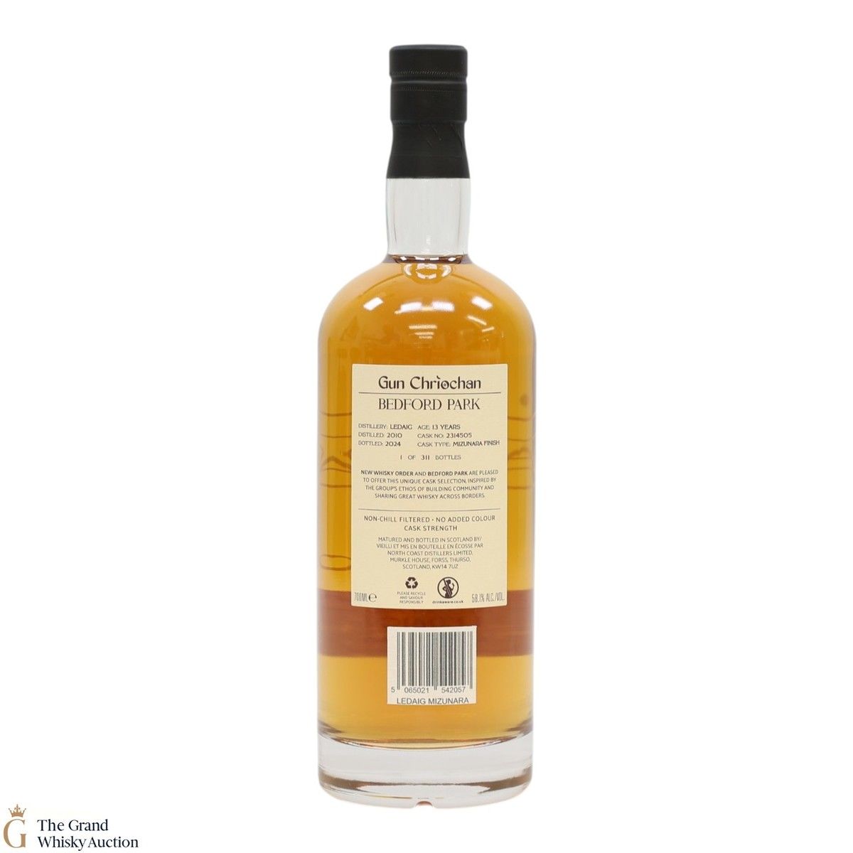 Due to the various ages of bottles and their seals, the condition of liquid is at the buyer's discretion and no claim can be lodged against failure/leakage in transit. Loss and breakage cover is available at 3% of the hammer price as standard. If the lot is not insured, no claim can be lodged against the courier or The Grand Whisky Auction for breakage or loss in transit.