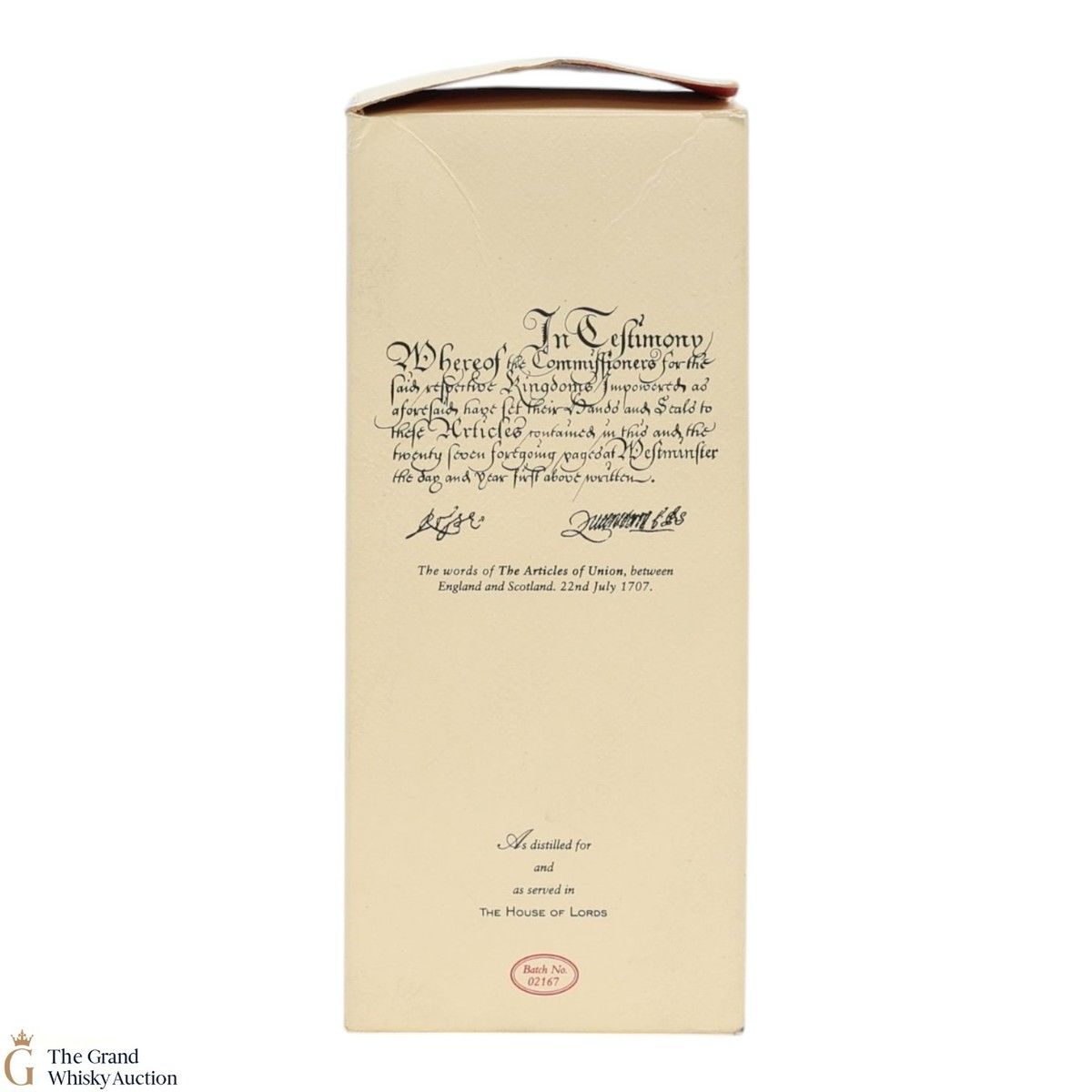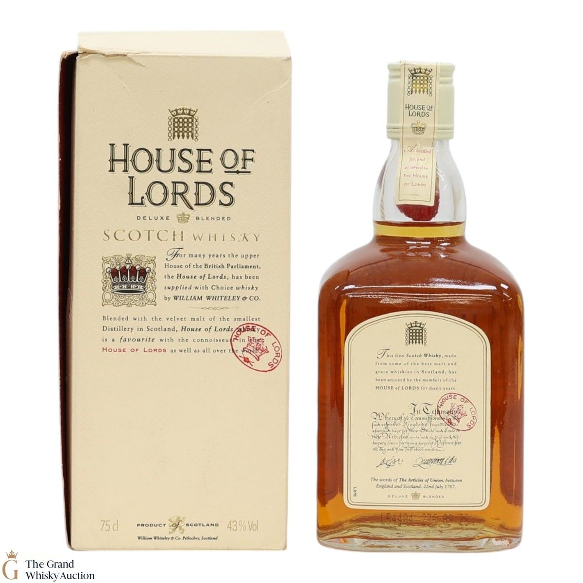 A 75cl blended scotch by William Whiteley & Co. for the House of Lords.