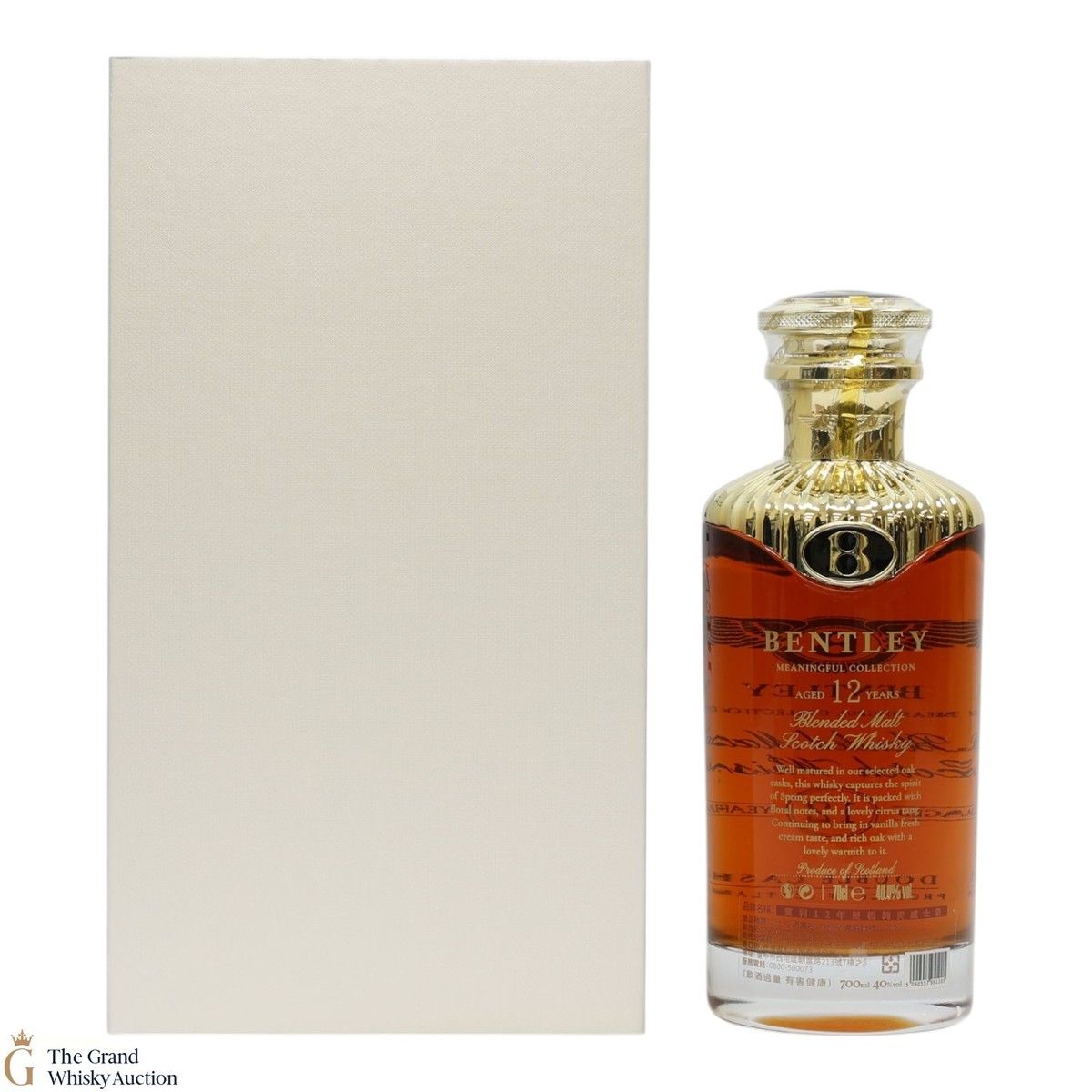 A 12-year-old blend of Highland and Speyside whiskies that have been double cask matured. Produced by Relaxan Drinks of Glasgow for the car manufacturer, Bentley.