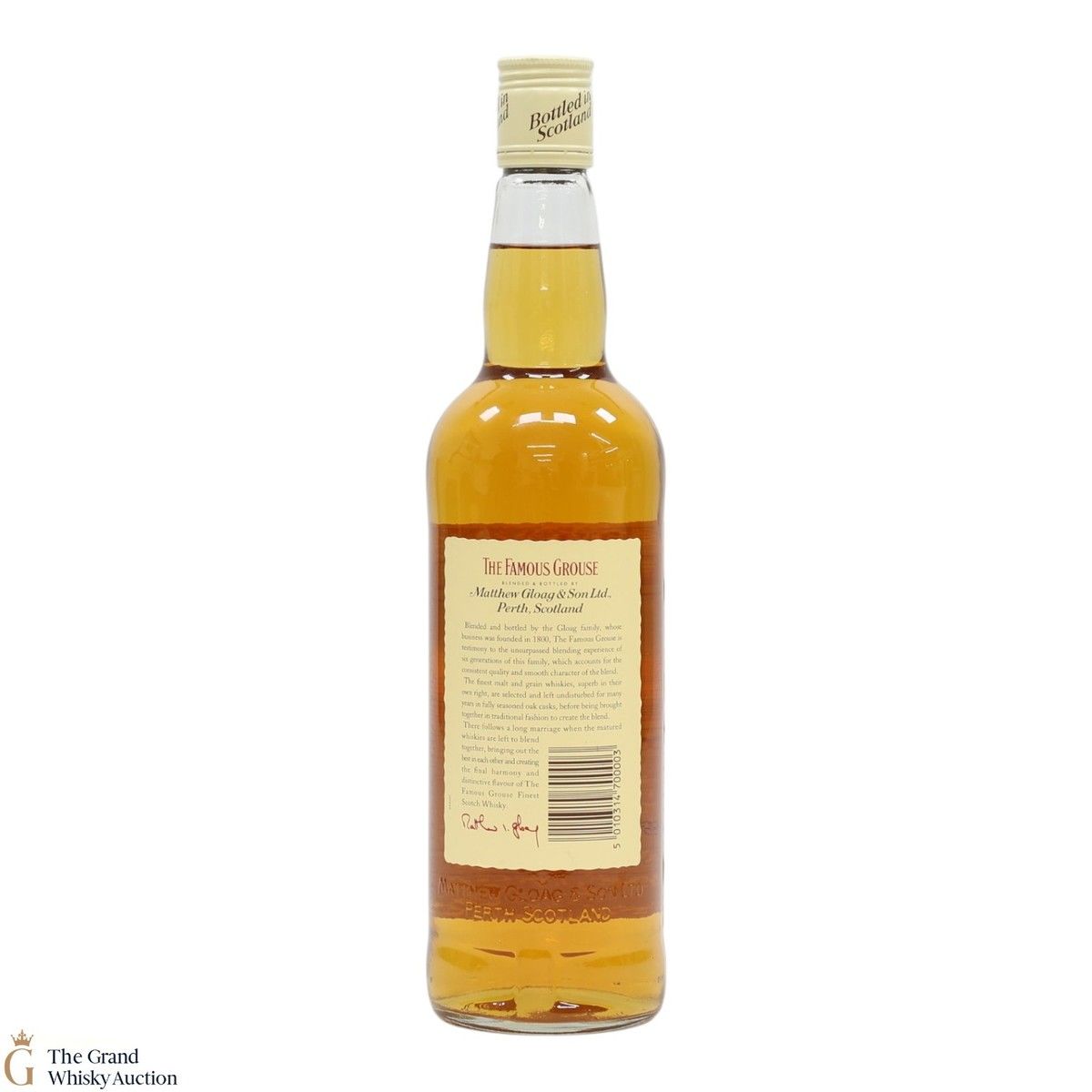Famous Grouse blended scotch whisky was first produced by Matthew Gloag & Son Ltd in 1896, and is currently produced and owned by The Edrington Group.