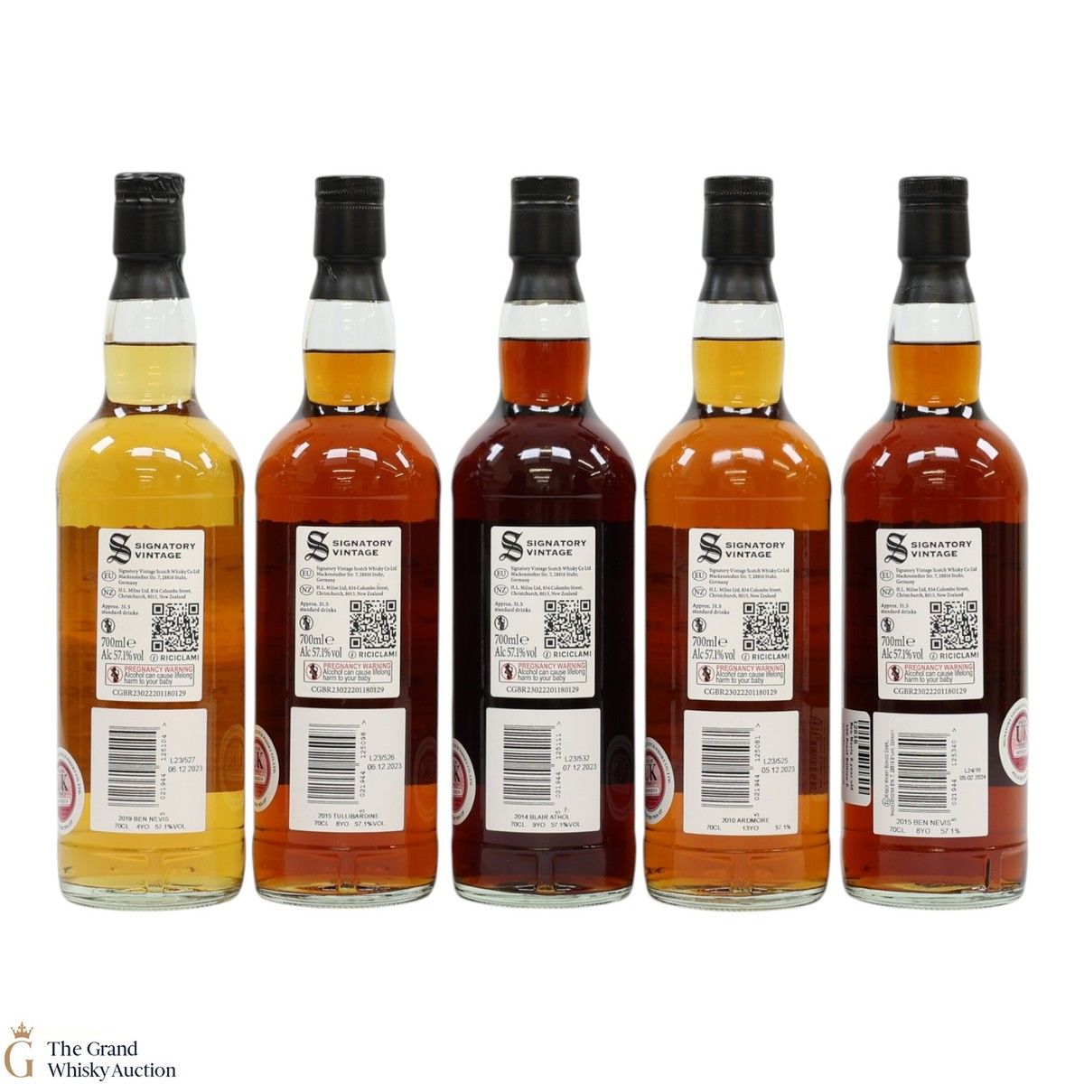 This lot contains Signatory Vintage 100 Proof Edition #1-5: