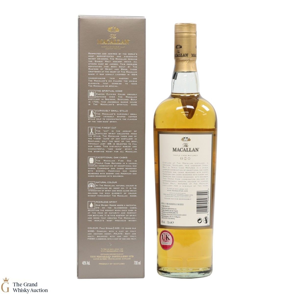 This 10 year old single malt is part of Macallan's Fine Oak, triple cask matured range. It has been matured for ten years in three oak cask types; Europen oak seasoned with sherry, American oak seasoned with sherry and American oak seasoned with bourbon. This bottling has been discontinued.