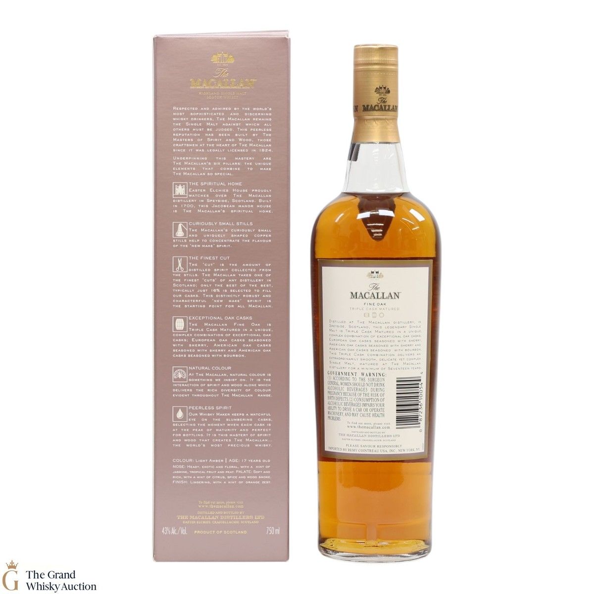The Macallan Fine Oak 17 Years Old is part of the Macallan Fine Oak range. It has been matured for a minimum of seventeen years in three oak cask types including American and European ex-oloroso sherry and American oak bourbon casks. It was introduced to the US market in 2006.