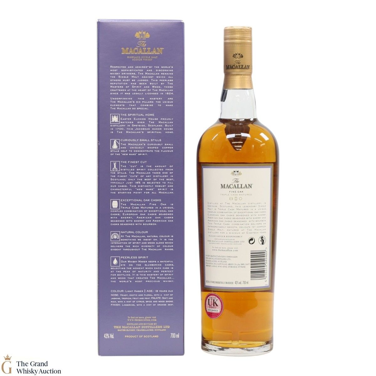 This 18 year old Macallan single malt was released in 2018 and sits is at the top of the Triple Cask range (which replaced the Fine Oak range). The whisky was matured in a combination of European sherry seasoned casks, American sherry seasoned casks and American ex-bourbon casks. This expression boasts bountiful notes of vanilla, dried fruit and woody spice.