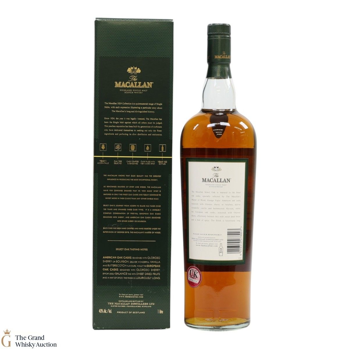 The Macallan Select Oak is crafted from a broad and unique selection of five casks which deliver a great smoothness, sweetness and depth. It is a lighter style of Macallan with sweet notes of butterscotch and vanilla.