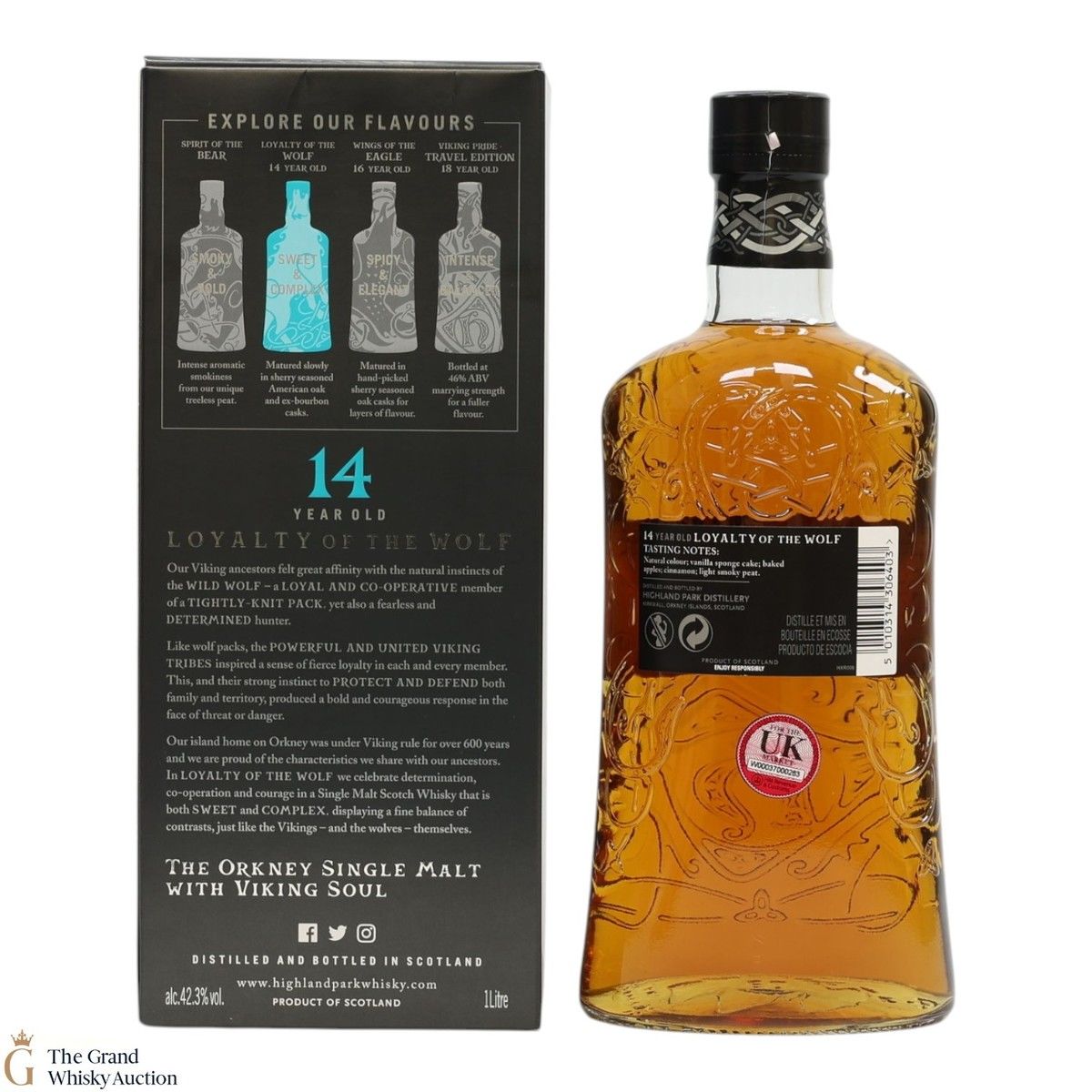 The 'Loyalty of the Wolf' by Highland Park is a 14-year-old single malt. This is a 1L bottle.