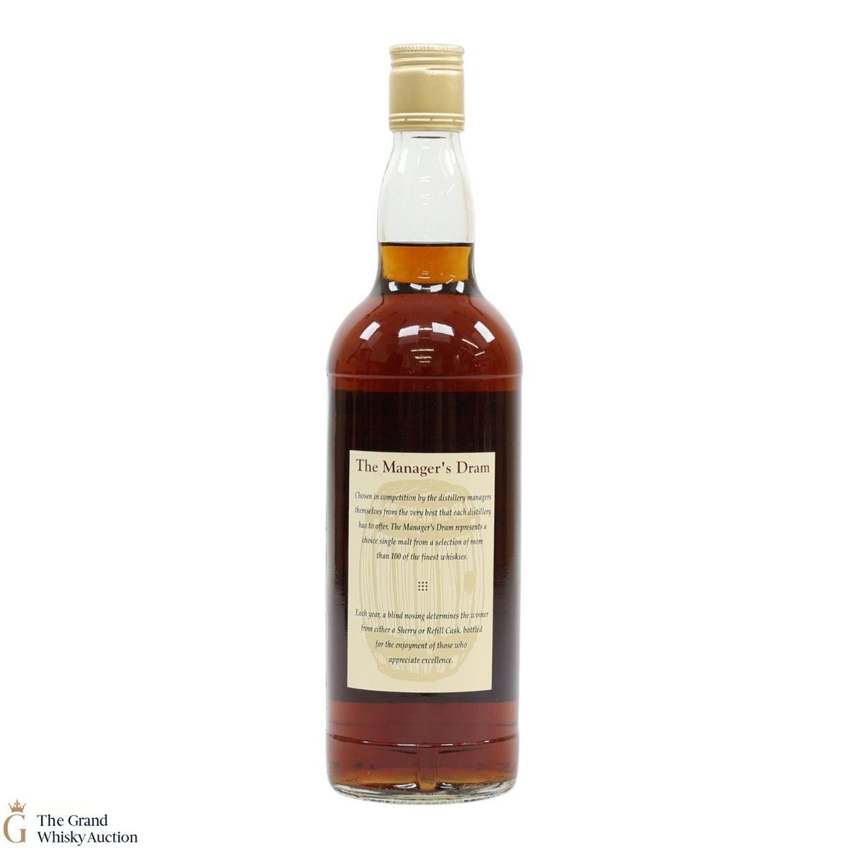 Due to the various ages of bottles and their seals, the condition of liquid is at the buyer's discretion and no claim can be lodged against failure/leakage in transit. Loss and breakage cover is available at 3% of the hammer price as standard. If the lot is not insured, no claim can be lodged against the courier or The Grand Whisky Auction for breakage or loss in transit.
