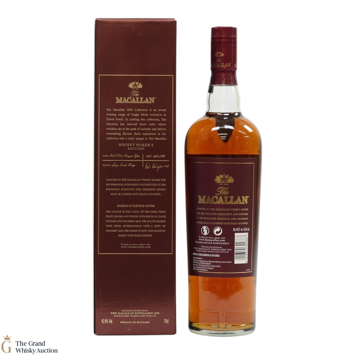Released for the travel retail market, this single malt is part of The Macallan Whisky Maker's Edition Classic Travel Range. It was crafted by Bob Dalgarno, Macallan's distillery manager, using whisky drawn from a combination of Sherry and bourbon casks. It is bottled at his preferred strength of 42.8%.