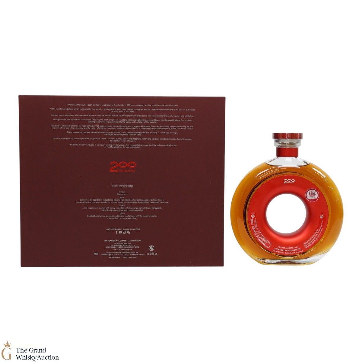 This whisky is contained in a unique circular vessel symbolising the circle of life and the ongoing journey from the past to the future. It was matured in one of Macallan's bespoke sherry-seasoned European oak casks until bottled at a strength of 43.6% ABV.